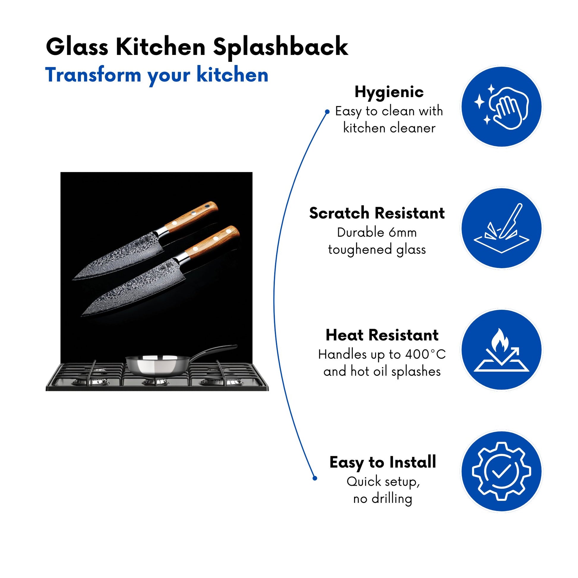 Durable and easy to clean, it's perfect for the kitchen. Whether renovating or updating your home’s look, our Premium 6mm Glass Kitchen Splashback is a stylish choice that makes a lasting impression. Upgrade your kitchen décor today for the perfect mix of beauty and practicality.