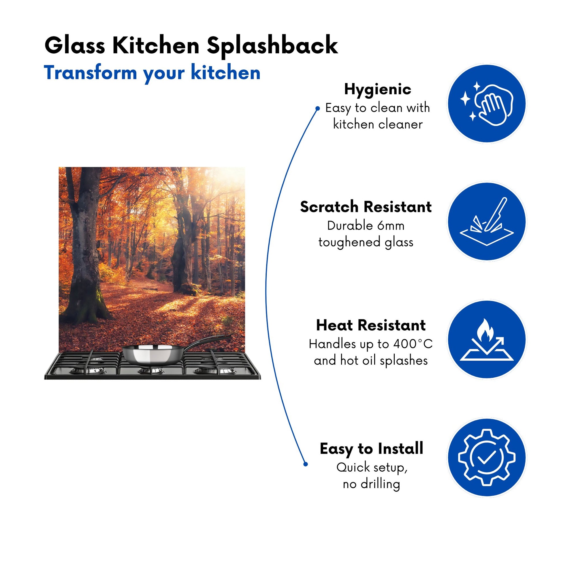 Durable and easy to clean, it's perfect for the kitchen. Whether renovating or updating your home’s look, our Premium 6mm Glass Kitchen Splashback is a stylish choice that makes a lasting impression. Upgrade your kitchen décor today for the perfect mix of beauty and practicality.