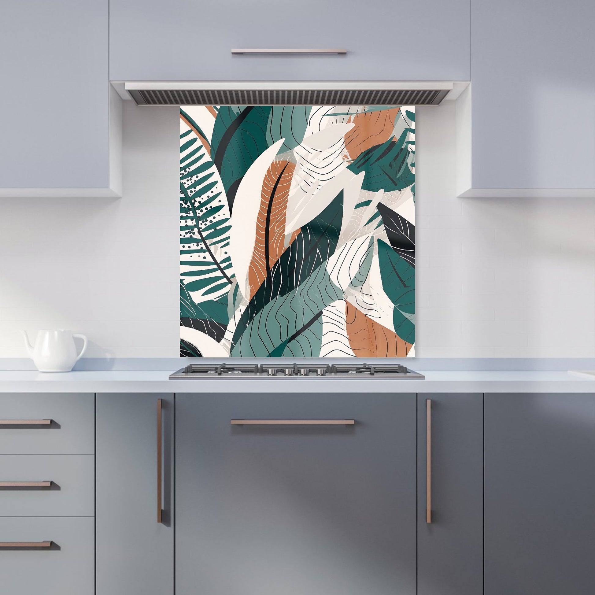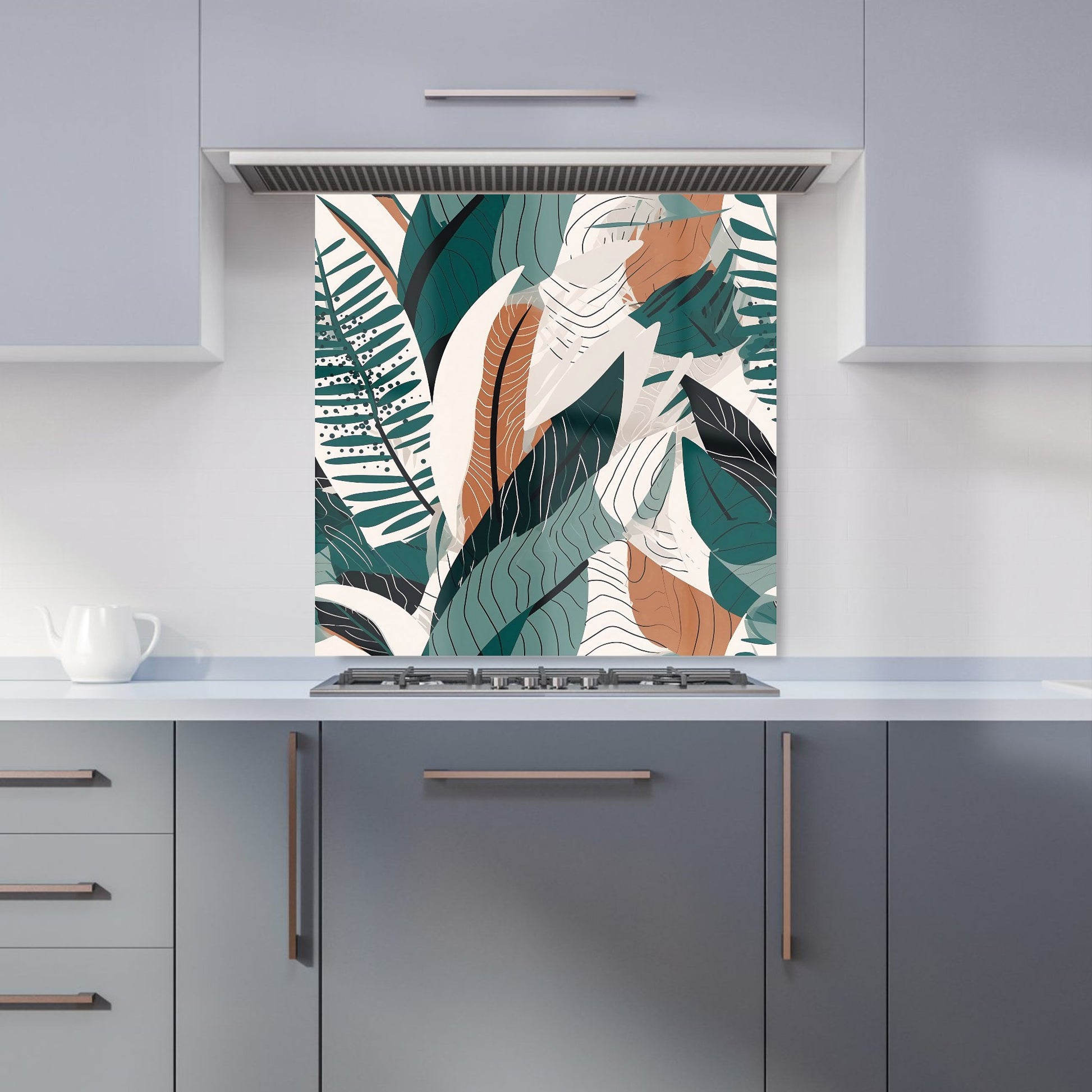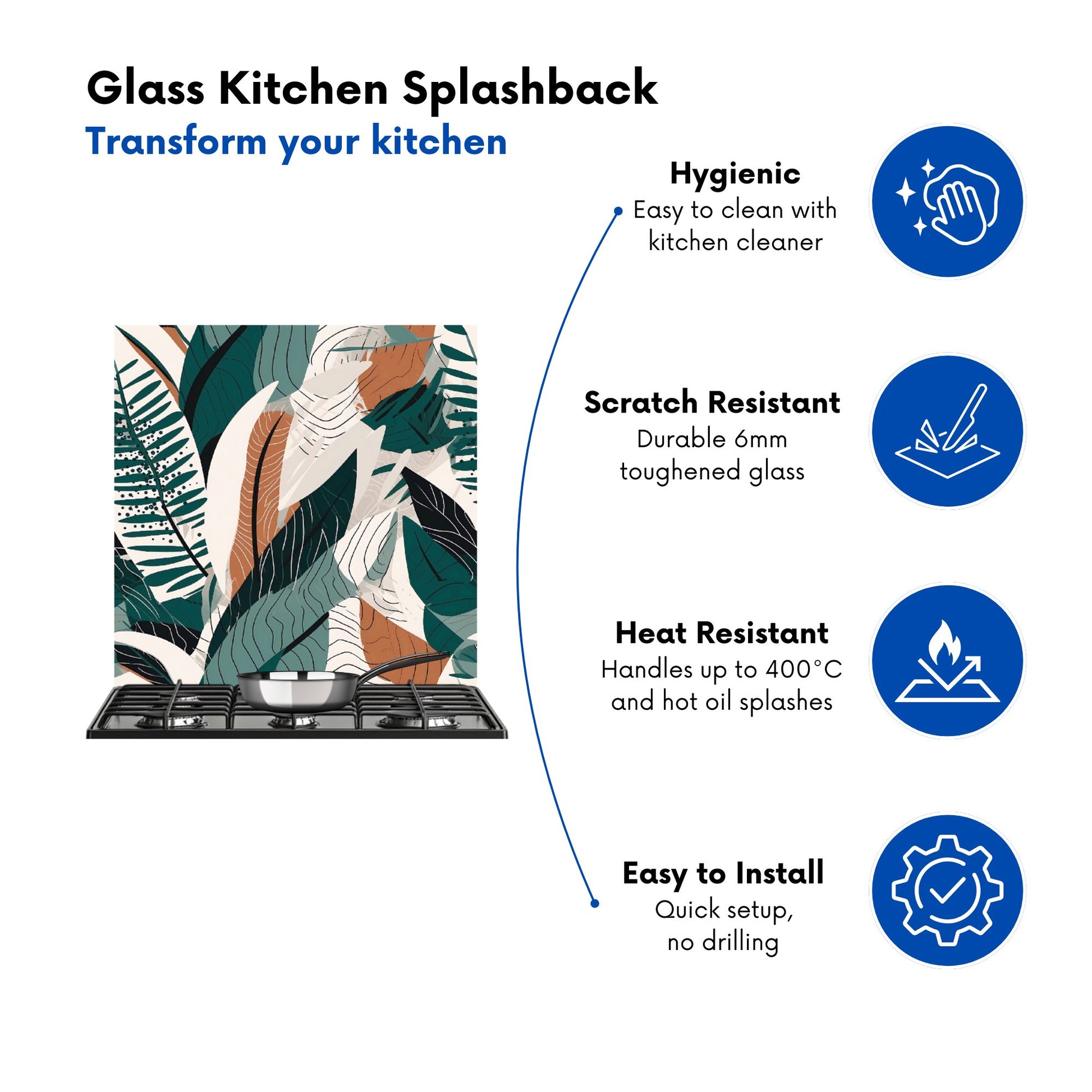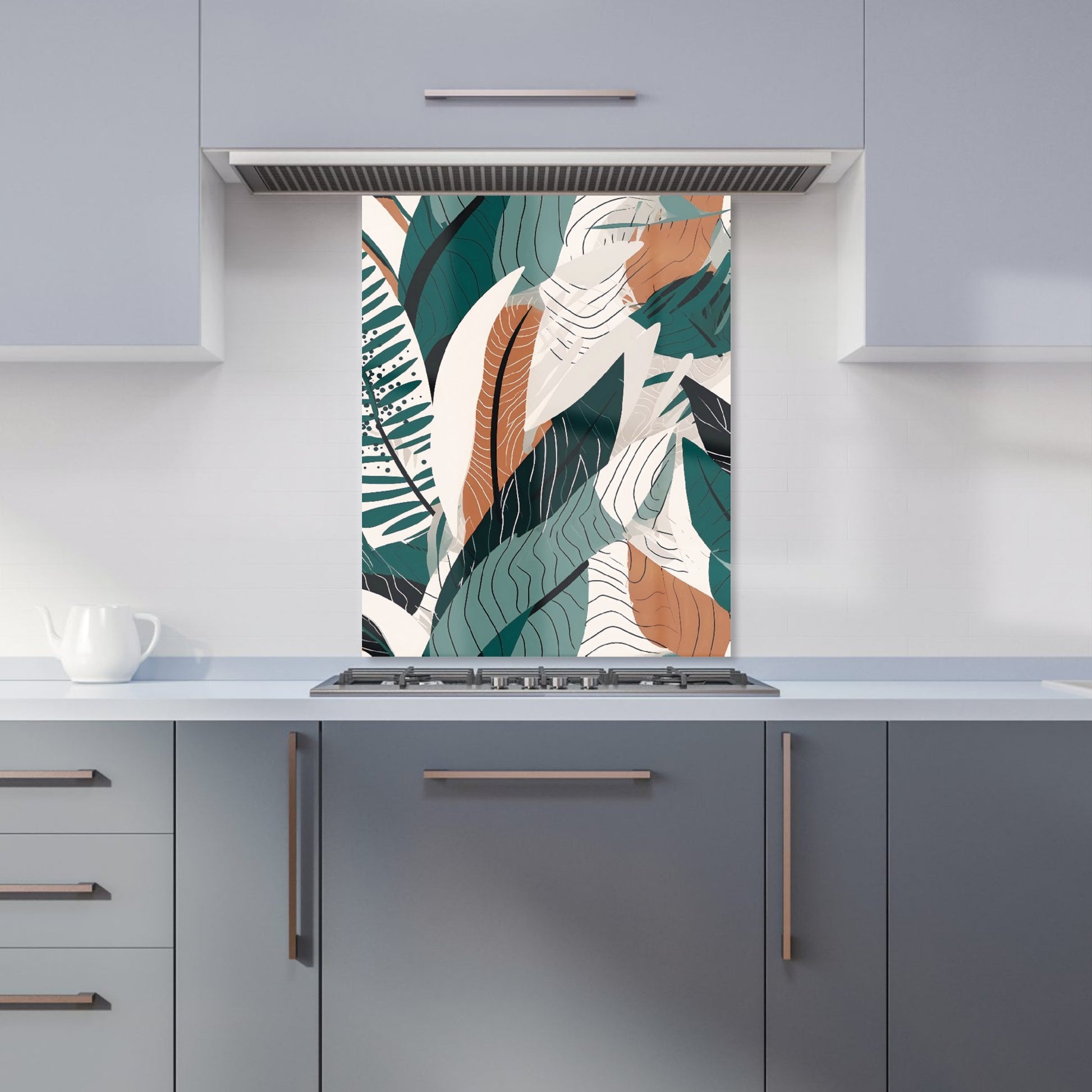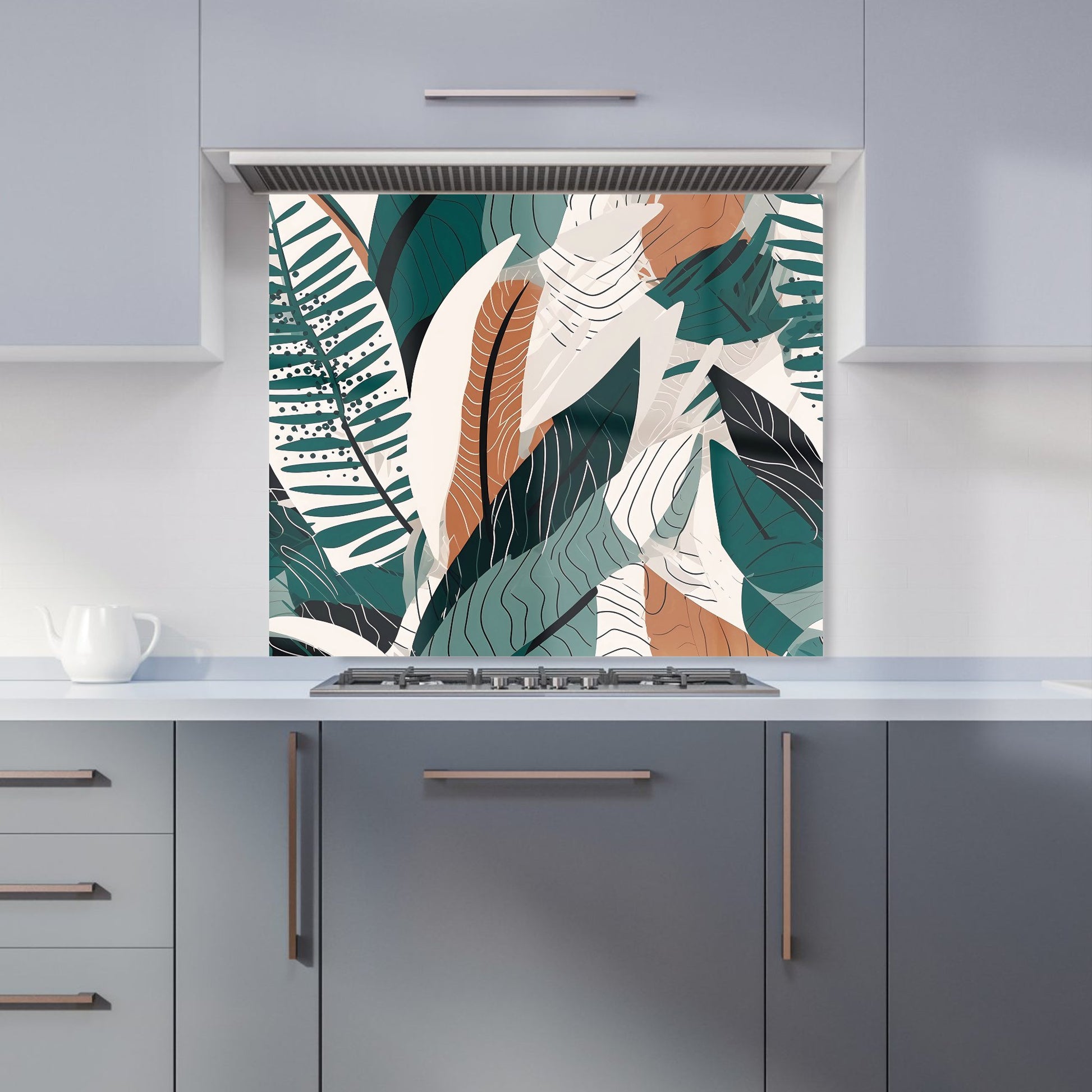 Autumn Tropical Leaves Green Brown Kitchen Splashback