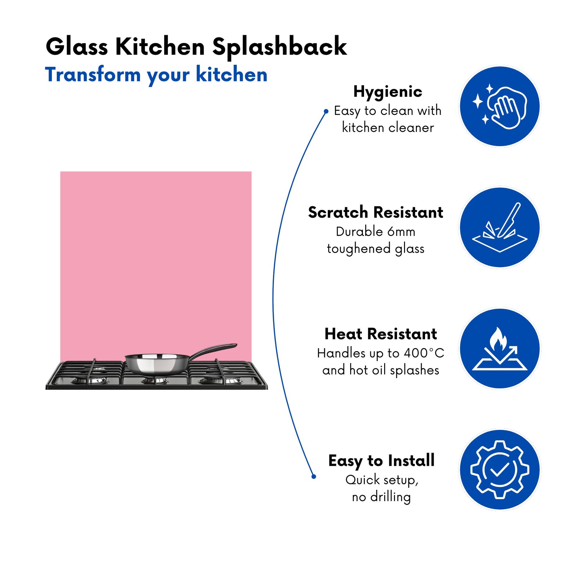Durable and easy to clean, it's perfect for the kitchen. Whether renovating or updating your home’s look, our Premium 6mm Glass Kitchen Splashback is a stylish choice that makes a lasting impression. Upgrade your kitchen décor today for the perfect mix of beauty and practicality.