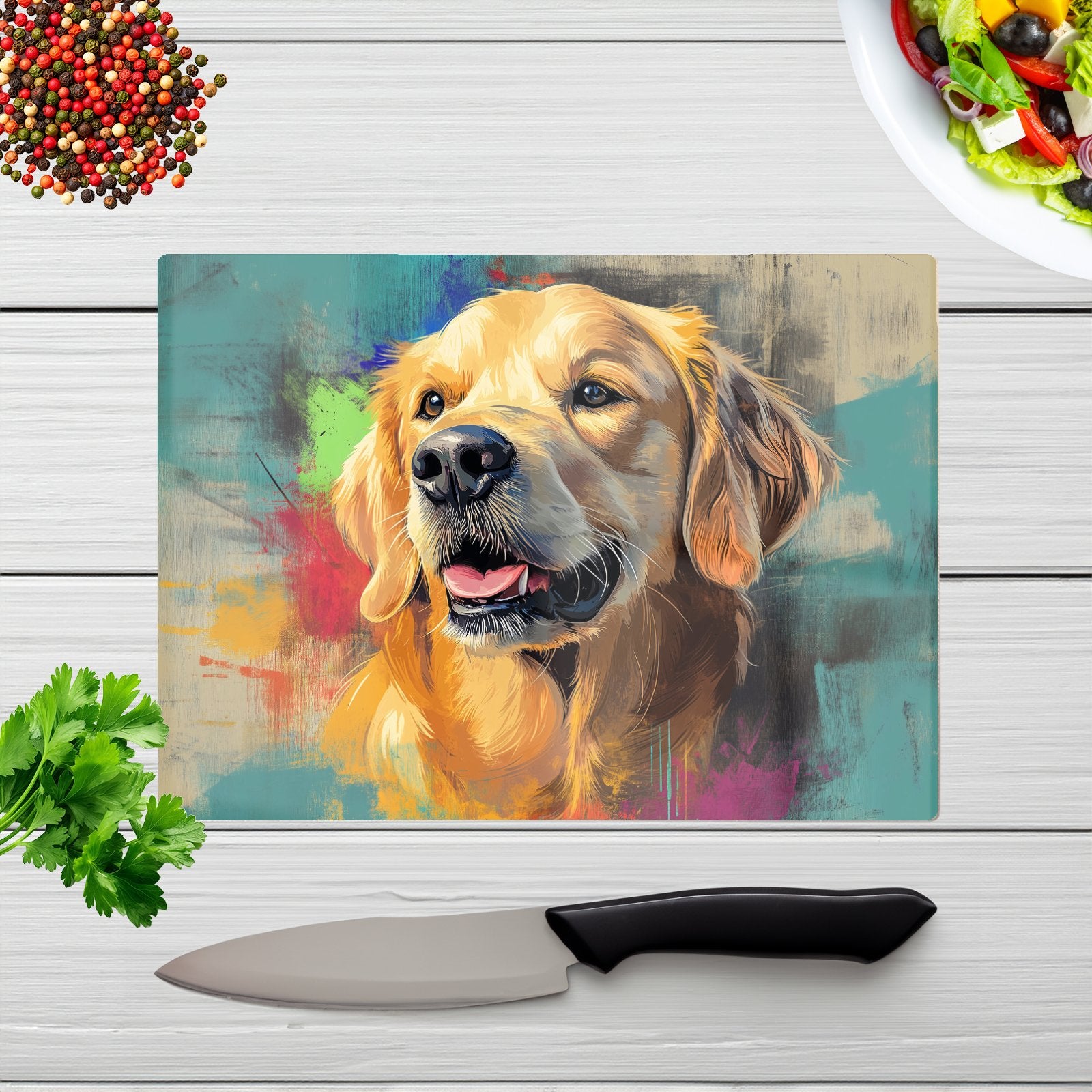 Banksy Inspired Golden Retriever Chopping Board