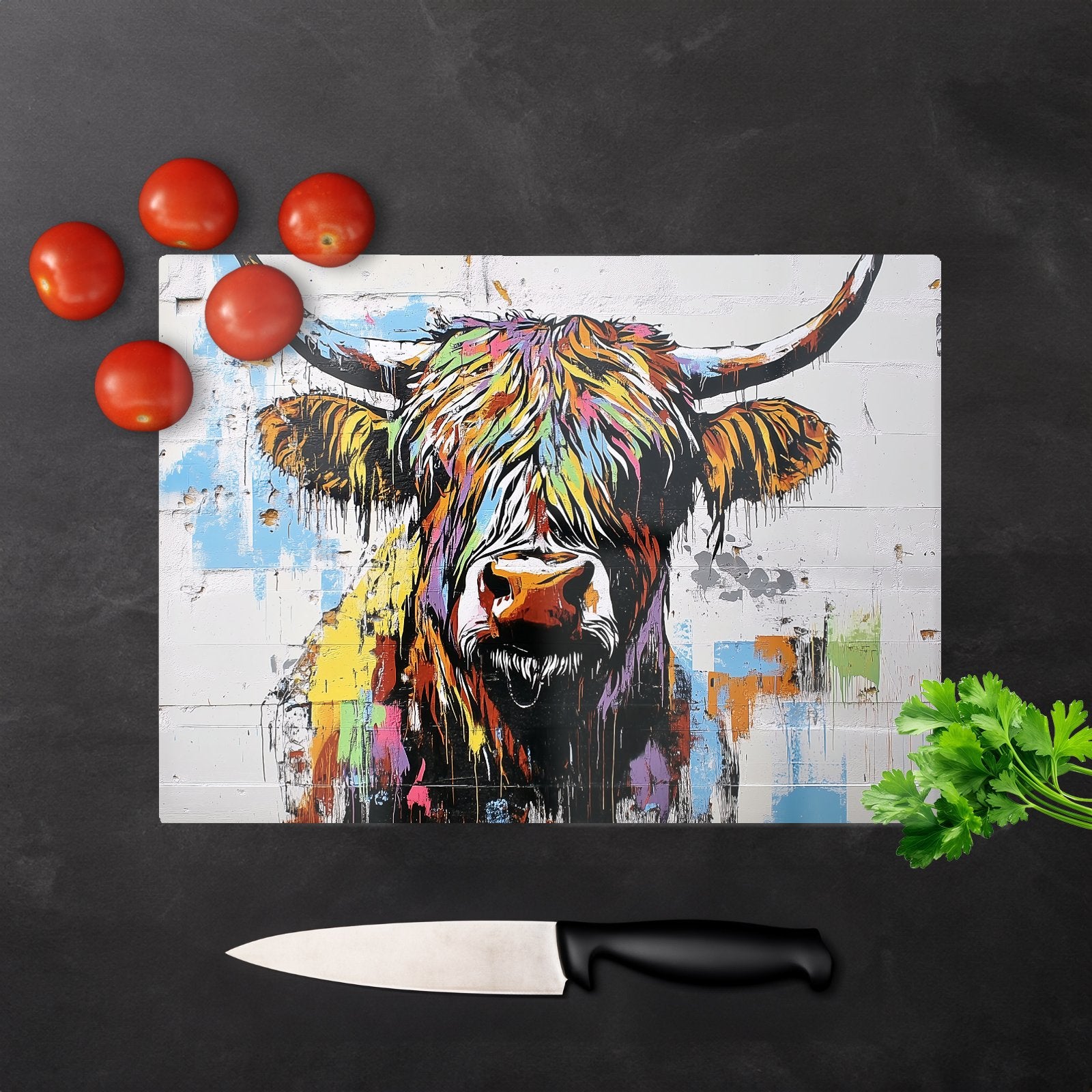 Banksy Inspired Highland Cow Chopping Board