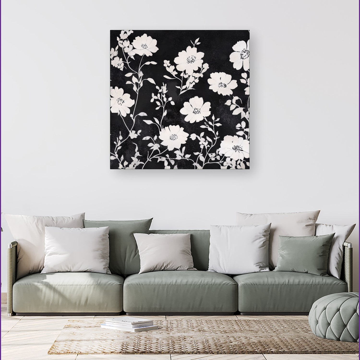 Black And White Floral Silhouette Canvas