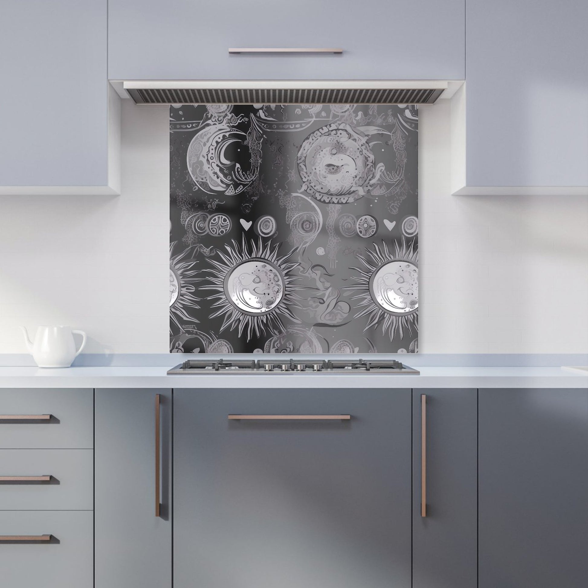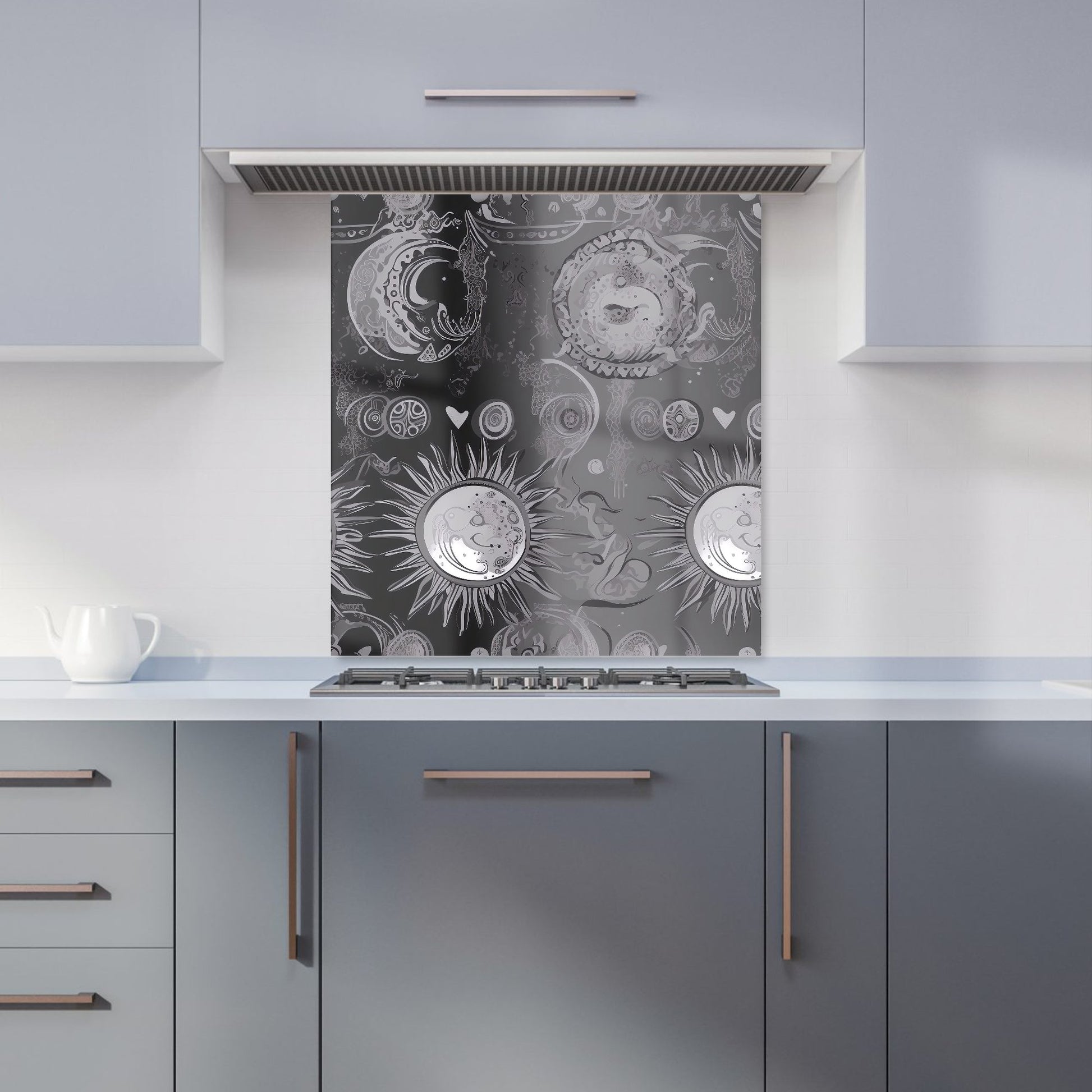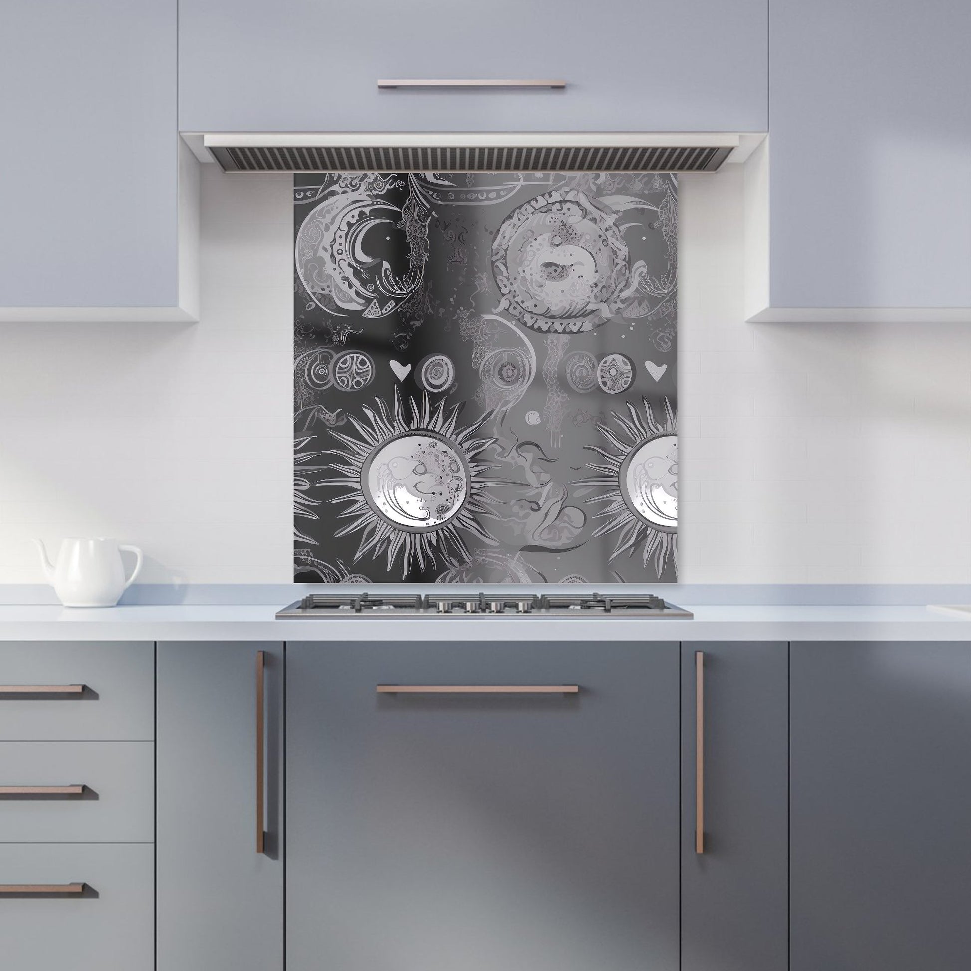 Black Grey Abstract Sun and Moon Kitchen Splashback