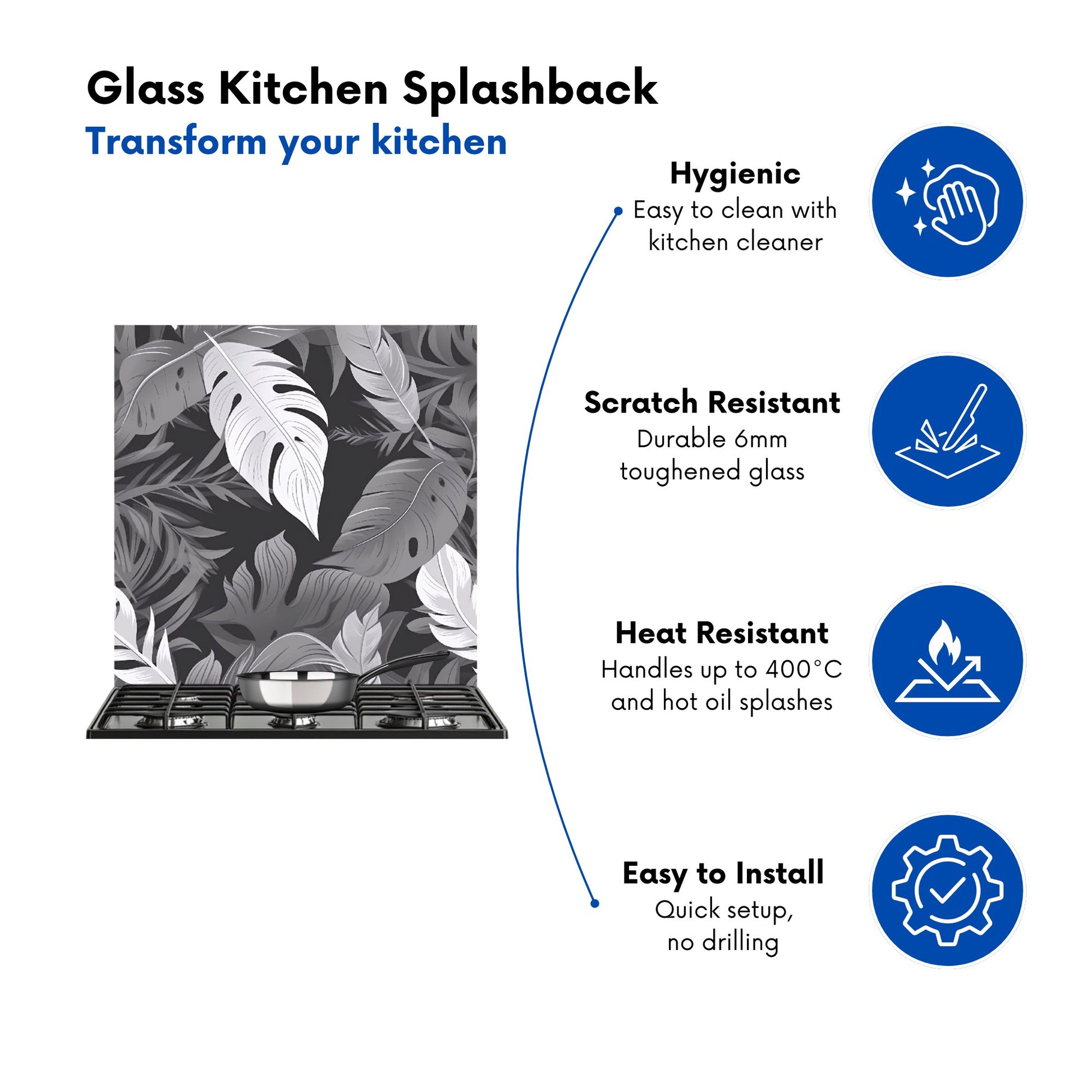 Durable and easy to clean, it's perfect for the kitchen. Whether renovating or updating your home’s look, our Premium 6mm Glass Kitchen Splashback is a stylish choice that makes a lasting impression. Upgrade your kitchen décor today for the perfect mix of beauty and practicality.