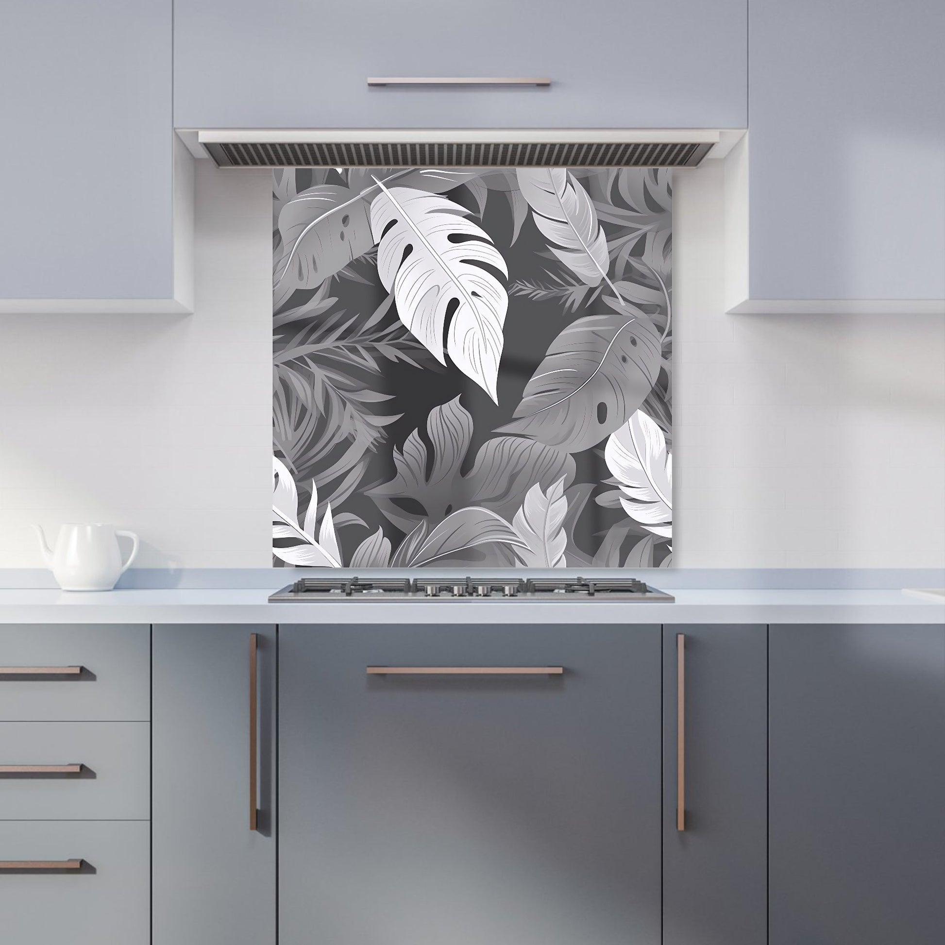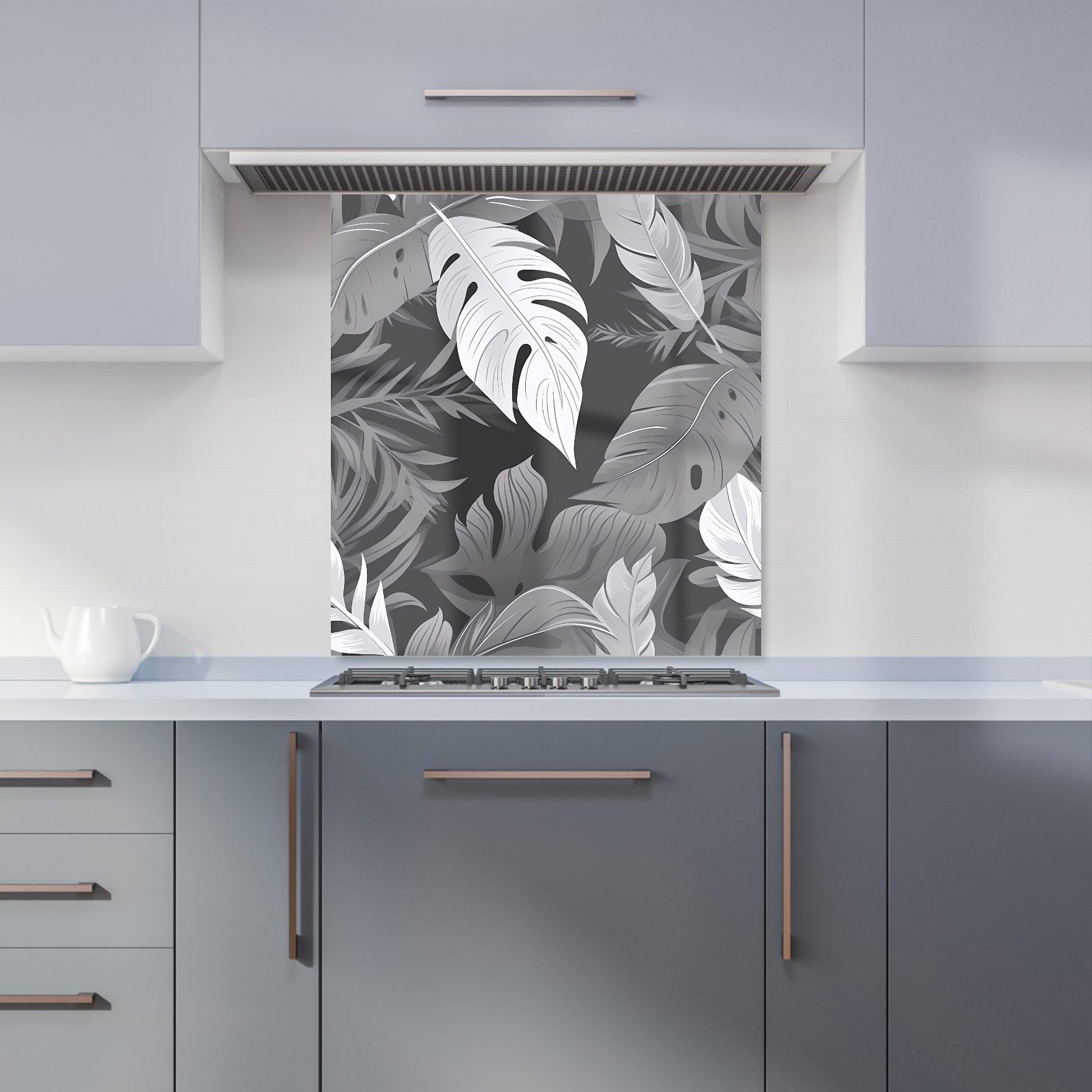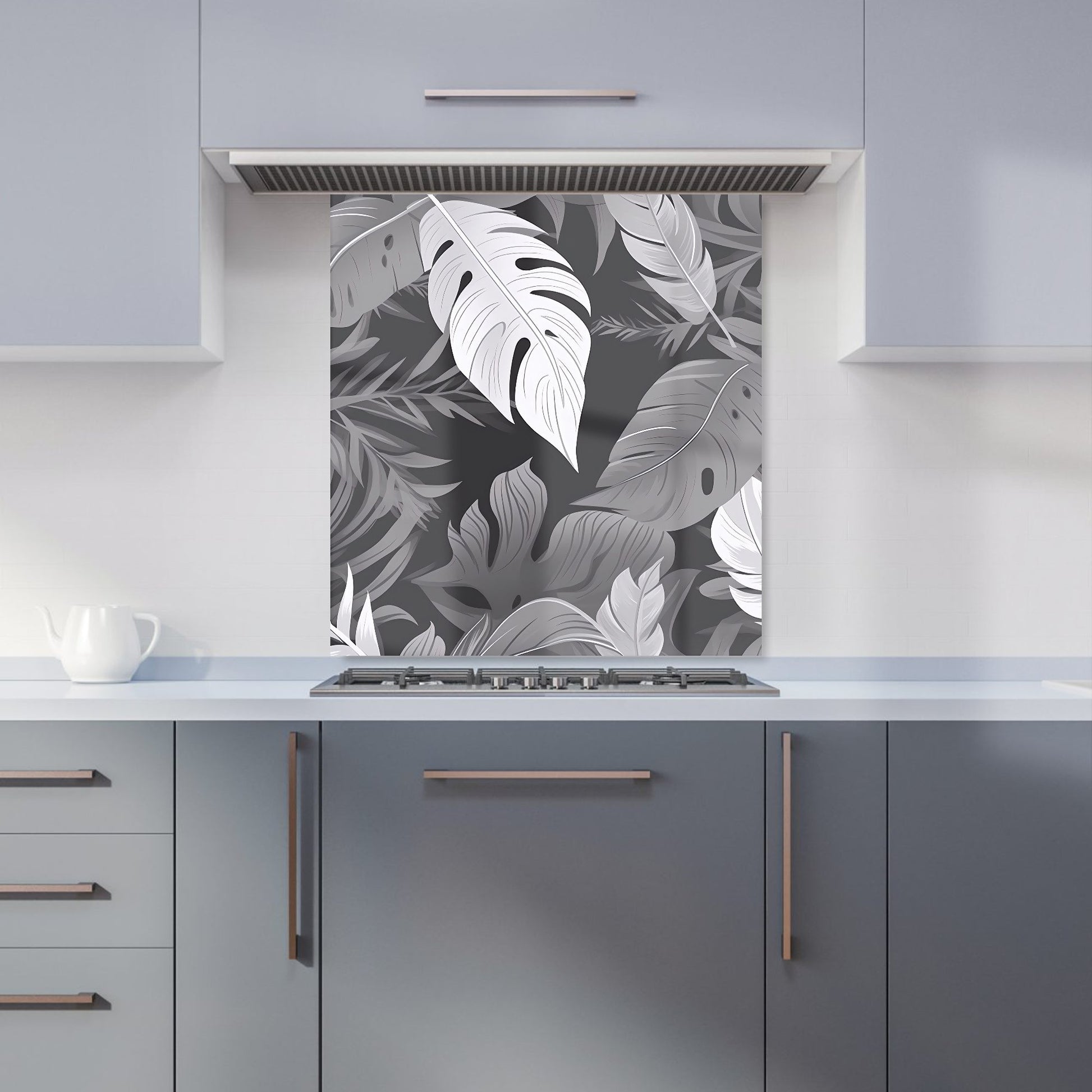 Black White Tropical Leaves Kitchen Splashback