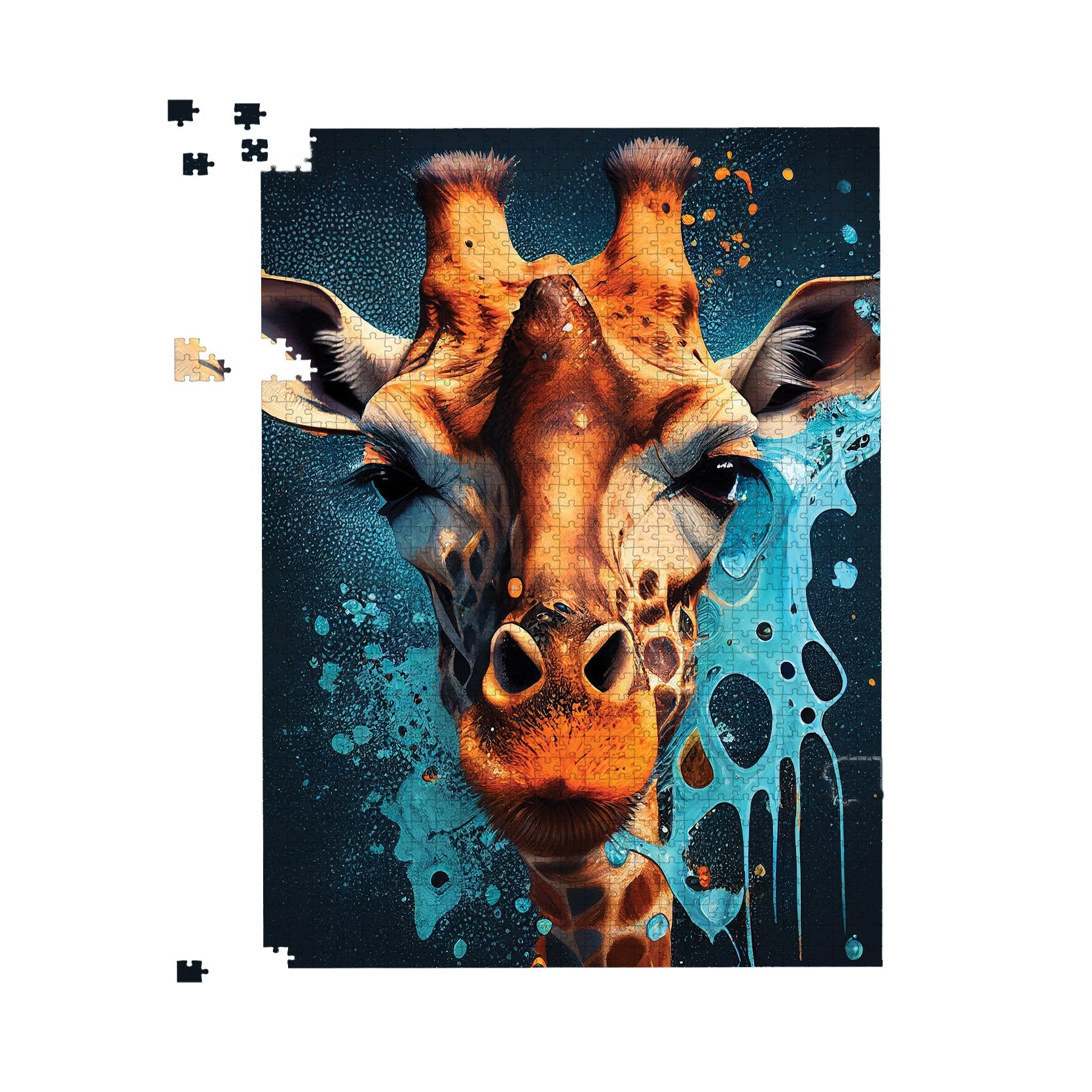 Blue Giraffe Face Splashart Jigsaw Puzzle