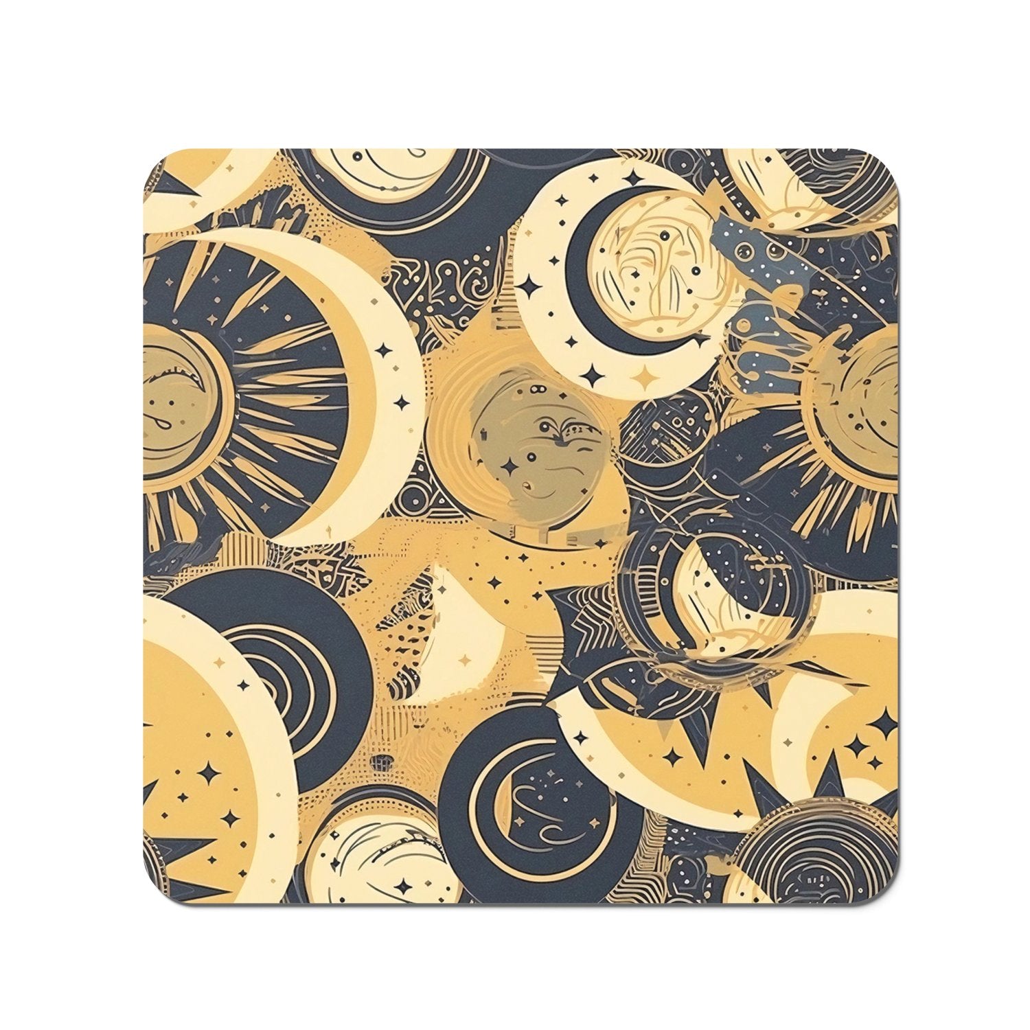 Blue Gold Moon and Sun Coasters