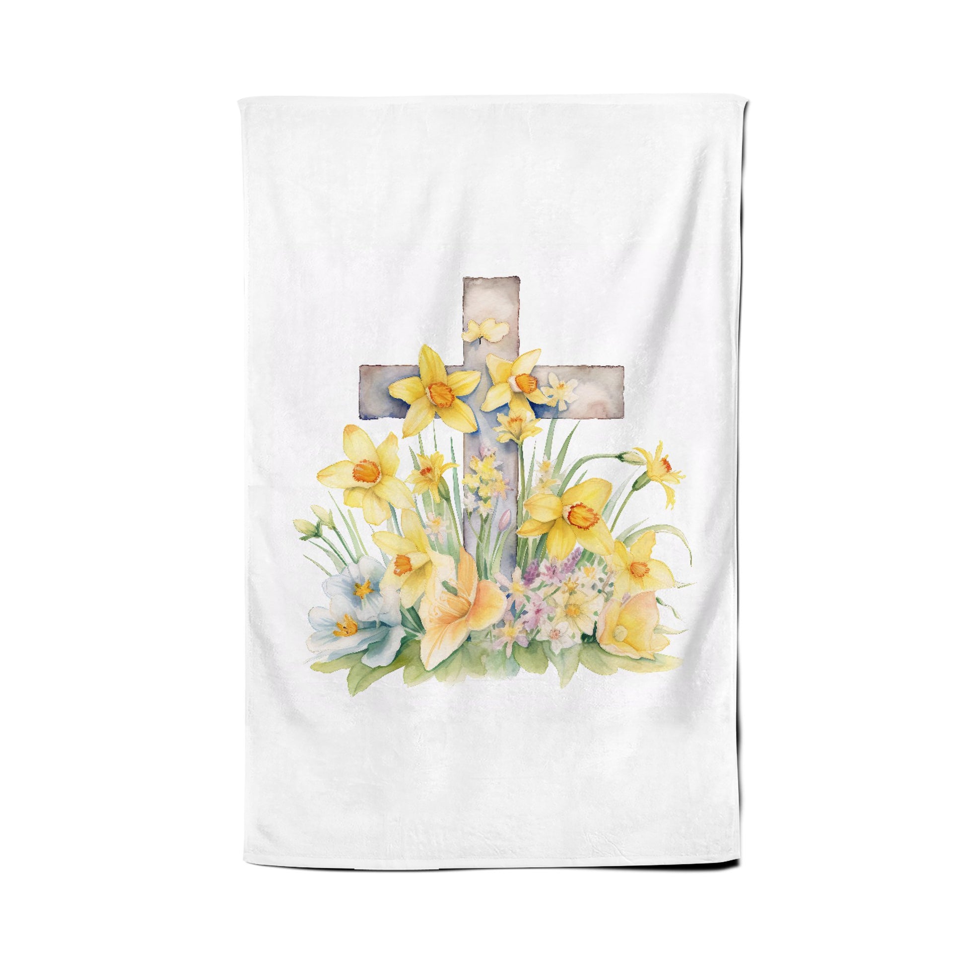 Boho Watercolour, Easter Cross with Daffodils Tea Towel