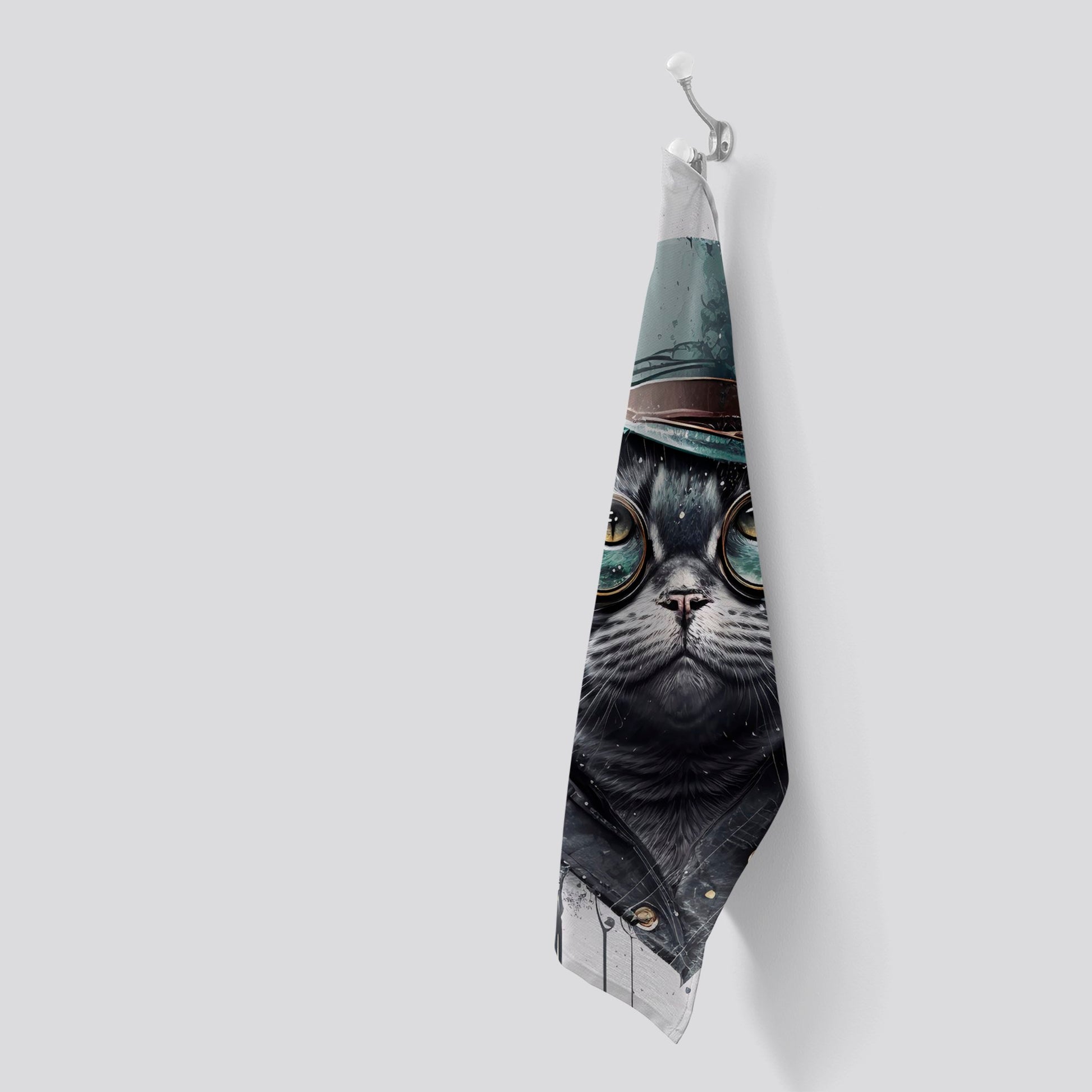 British Shorthair Cat With Glasses Splashart Tea Towel