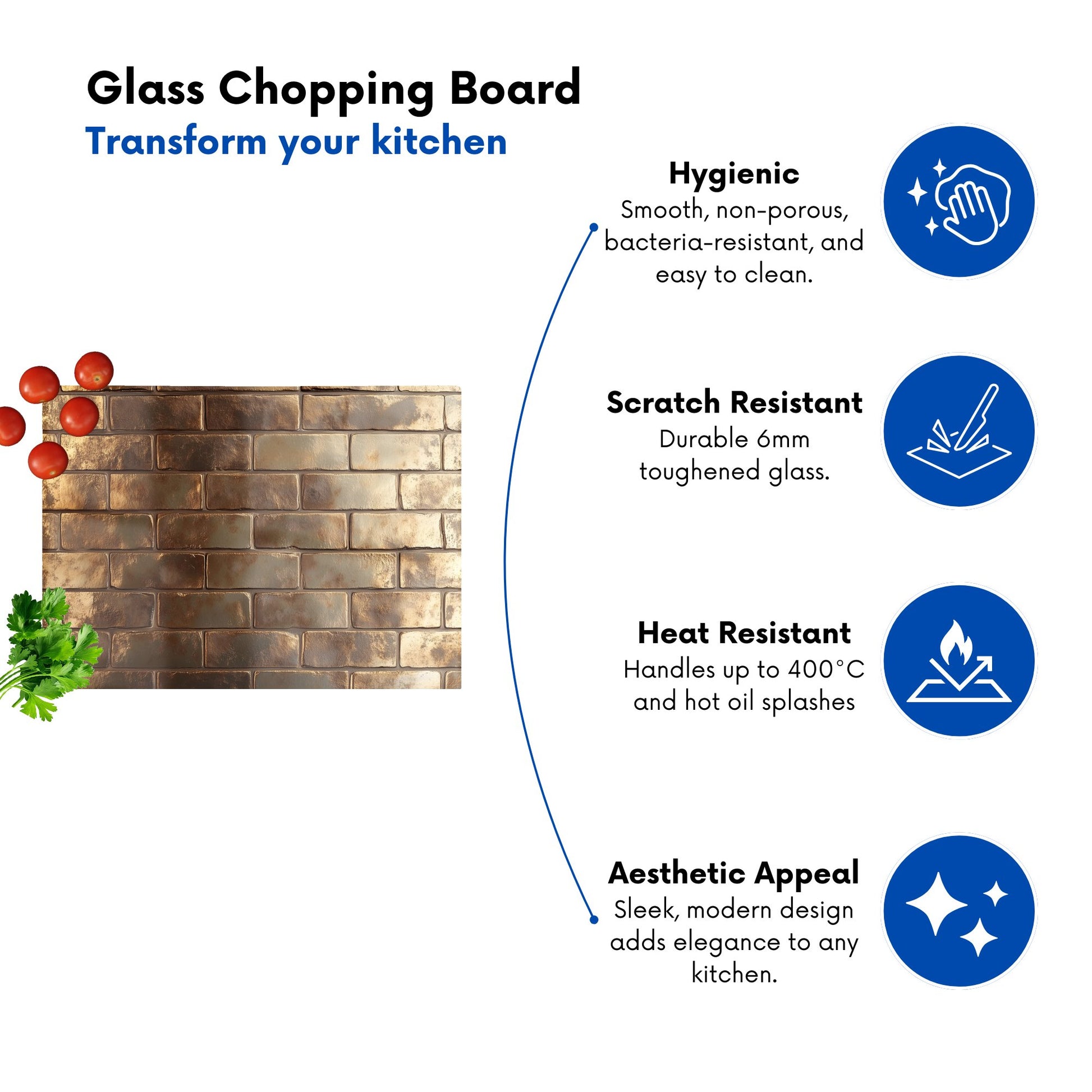 Hygienic Surface – Non-porous, smooth glass that resists bacteria and is easy to wipe clean.