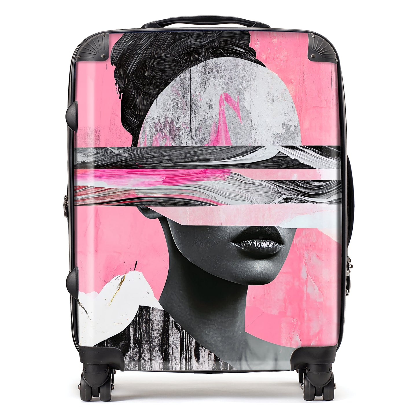 Enhance your travels with the striking design of a Calista Vale suitcase. Each piece reflects Calista's unique digital collage style, exploring themes of identity and perception through fragmented, layered images. Her work blends monochromatic tones with vibrant reds and yellows, combining abstract photography with surreal elements for a fluid, modern look. Crafted from premium, lightweight materials, this suitcase is both a visual masterpiece and highly durable, designed to withstand the challenges of travel while being easy to handle. Whether you're jetting off on a short trip or a long journey, the Calista Vale Suitcase seamlessly merges artistic innovation with practical functionality, making a bold statement wherever you go.