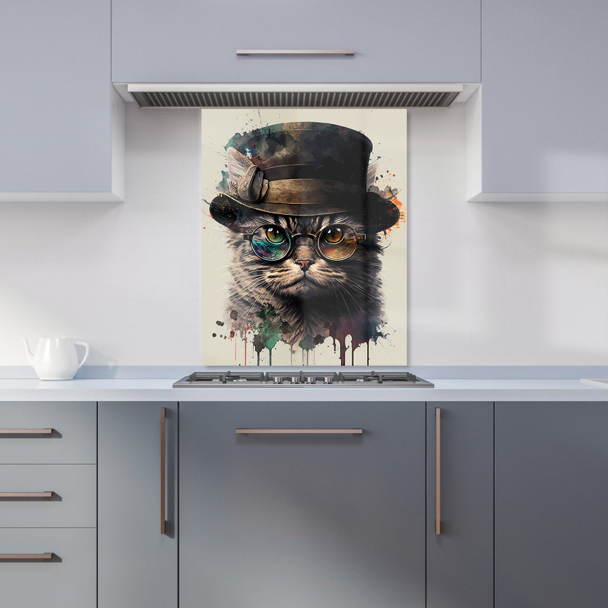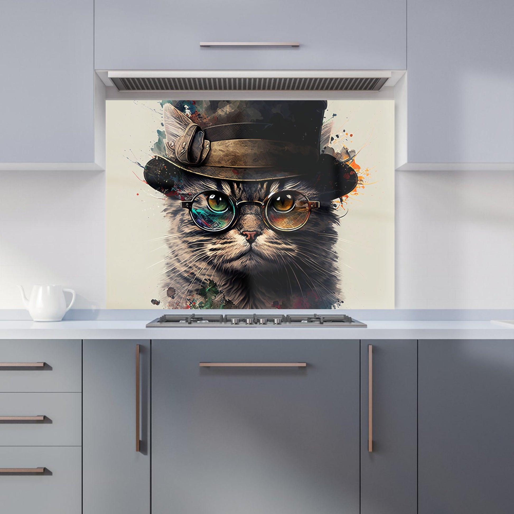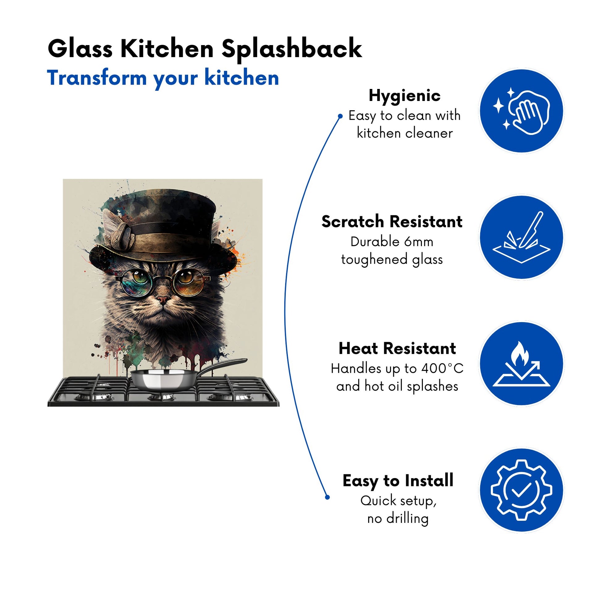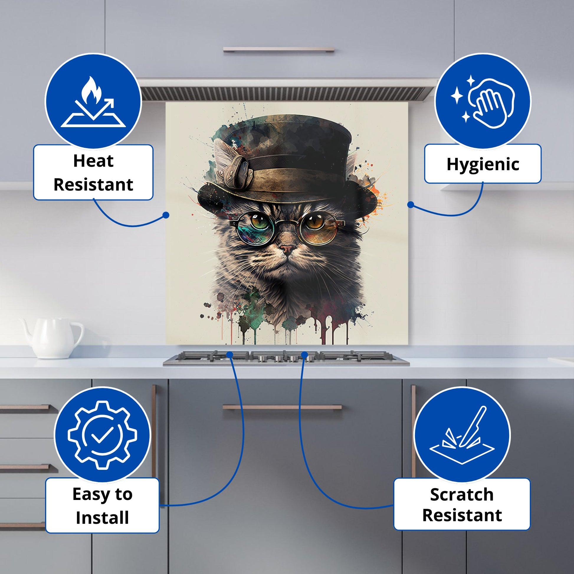 Cat With Glasses And Hat Splashart Kitchen Splashback