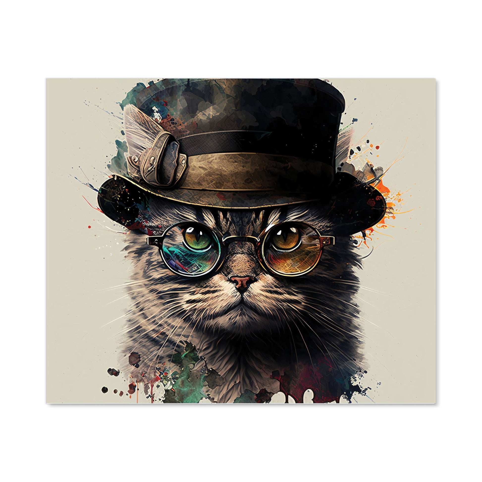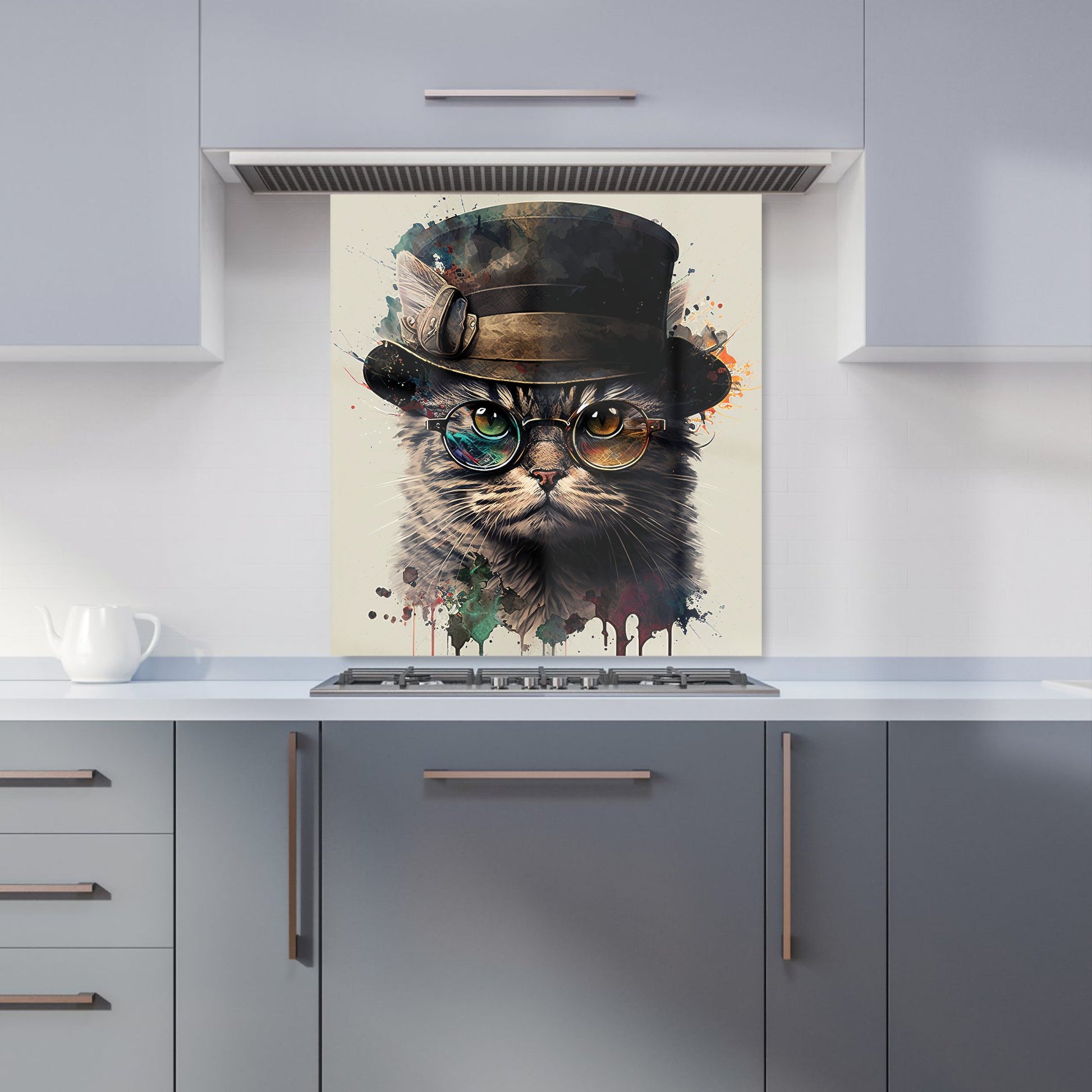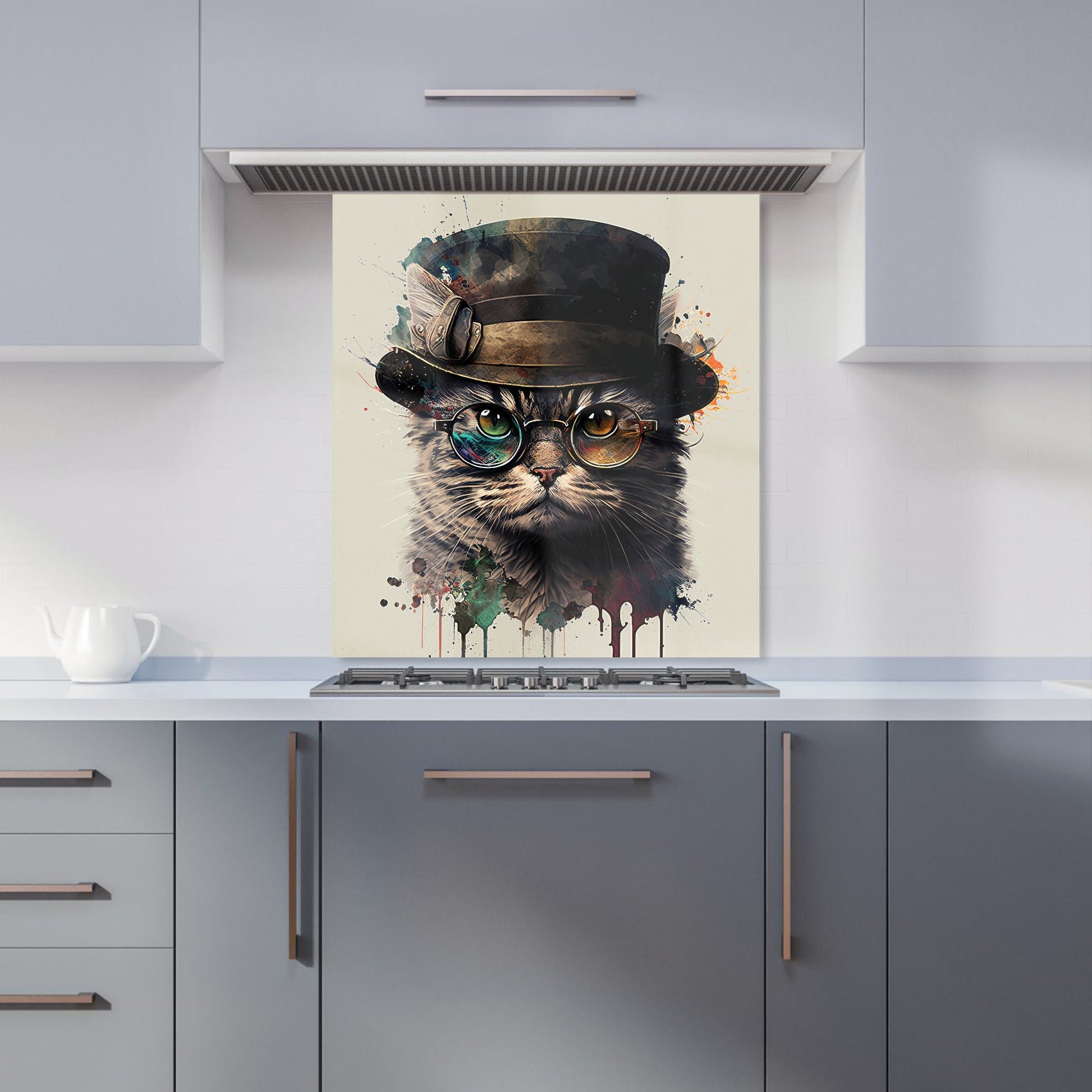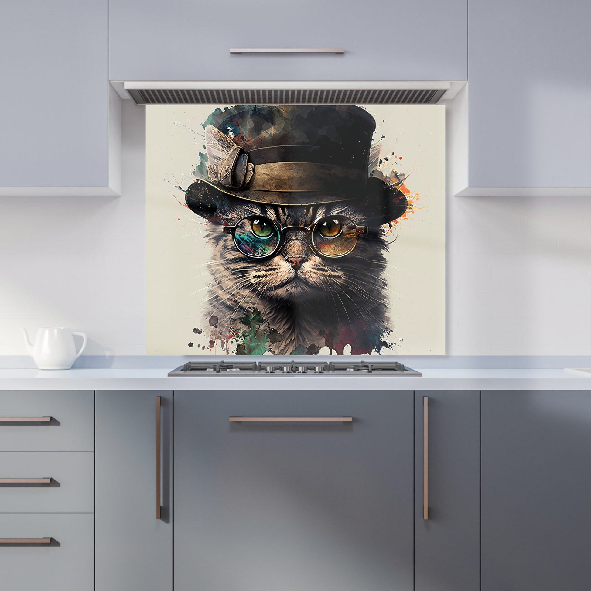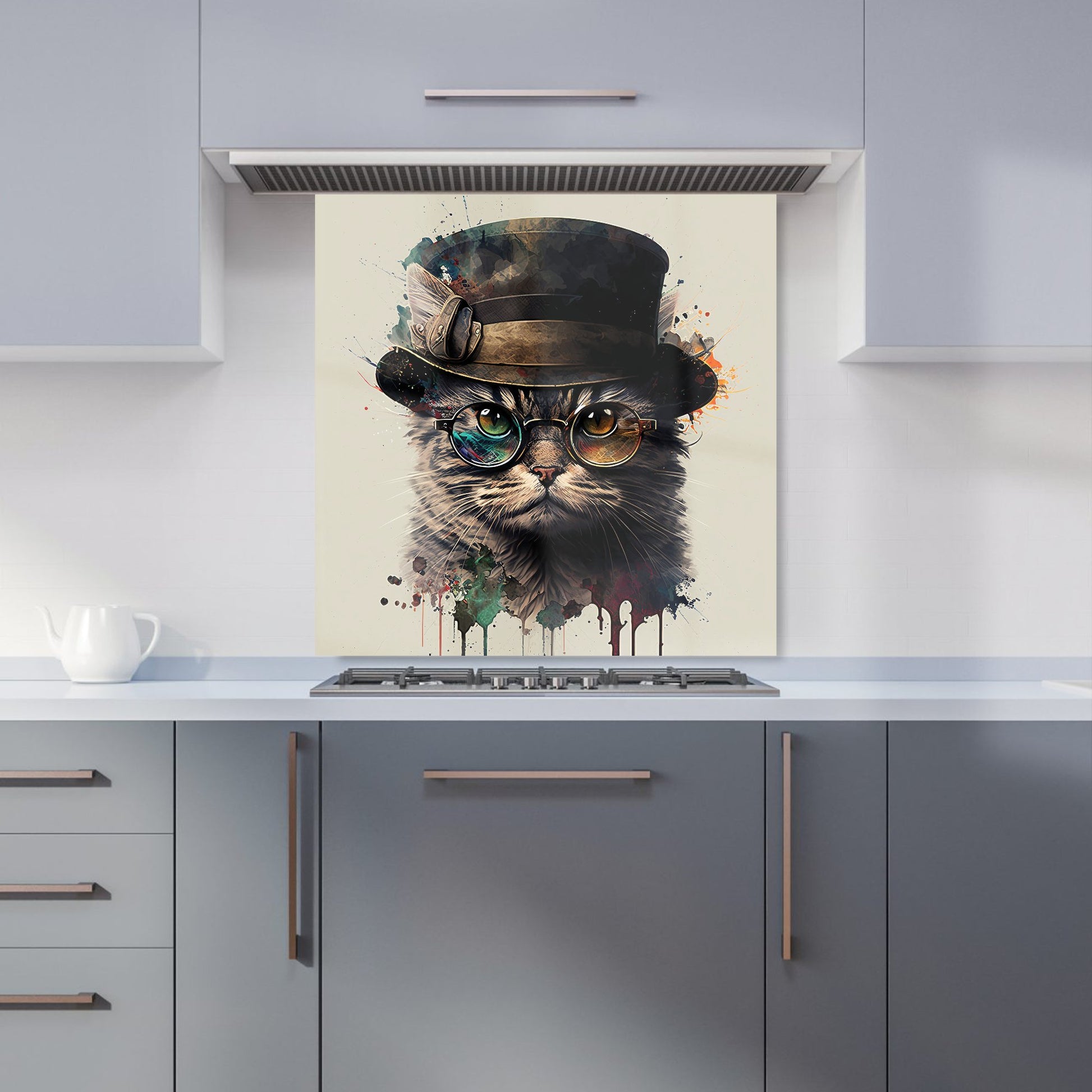 Cat With Glasses And Hat Splashart Kitchen Splashback
