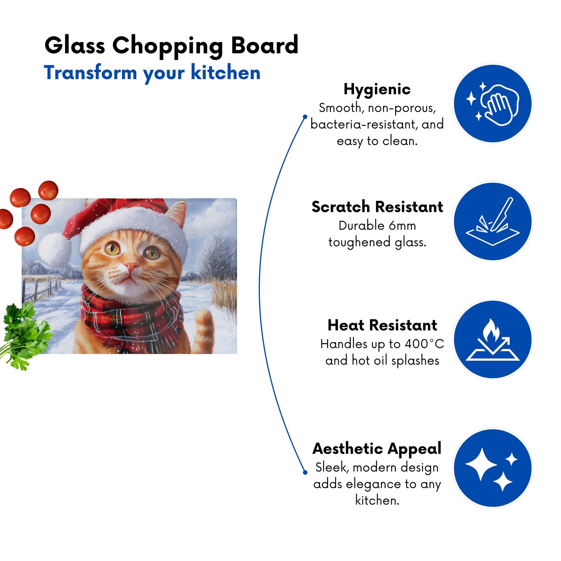 Christmas Ginger Shorthaircat Glass Chopping Board