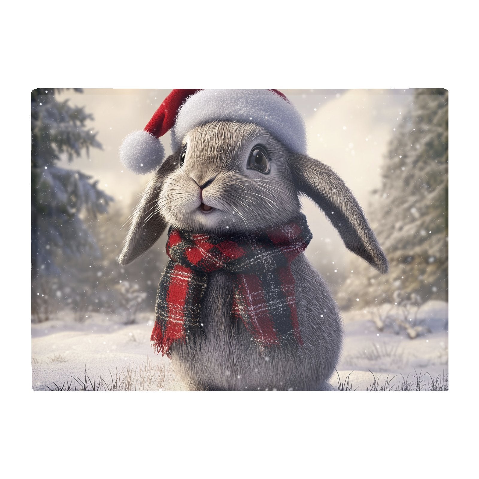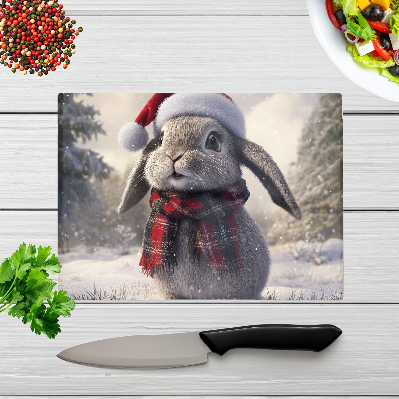 Christmas Grey Rabbit Glass Chopping Board