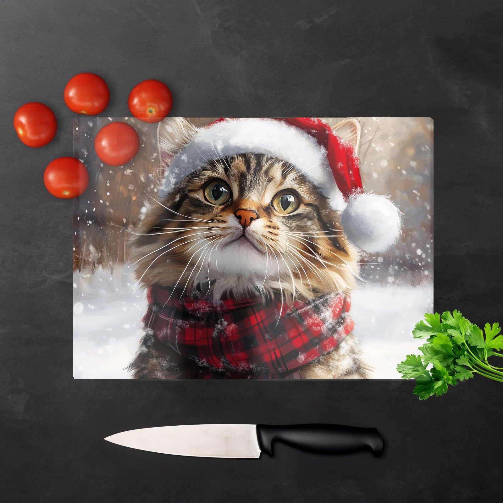 Christmas Ragamuffin Glass Chopping Board