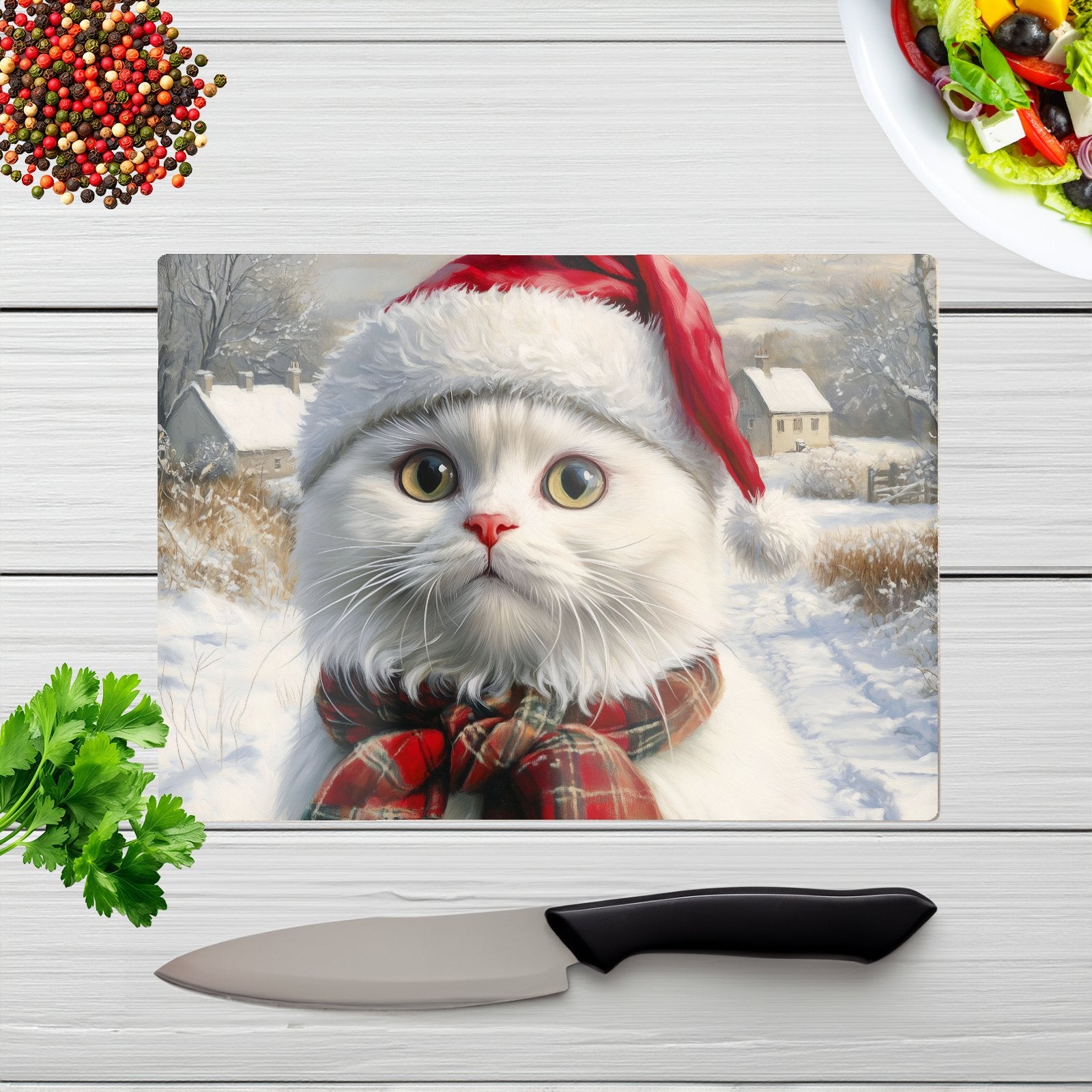 Christmas White Cat Glass Chopping Board
