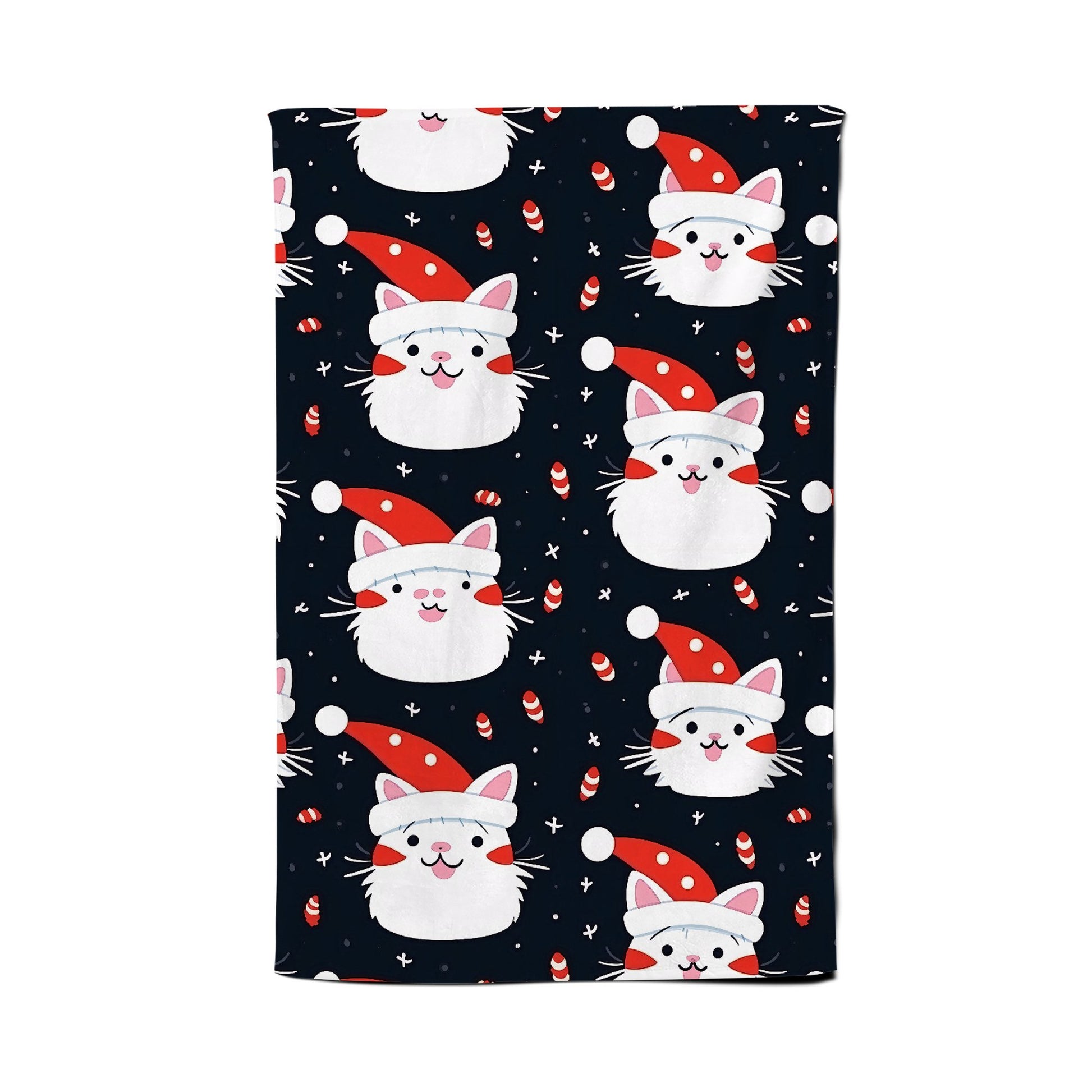 Cute Cats Wearing Santa Claus Hats Tea Towel