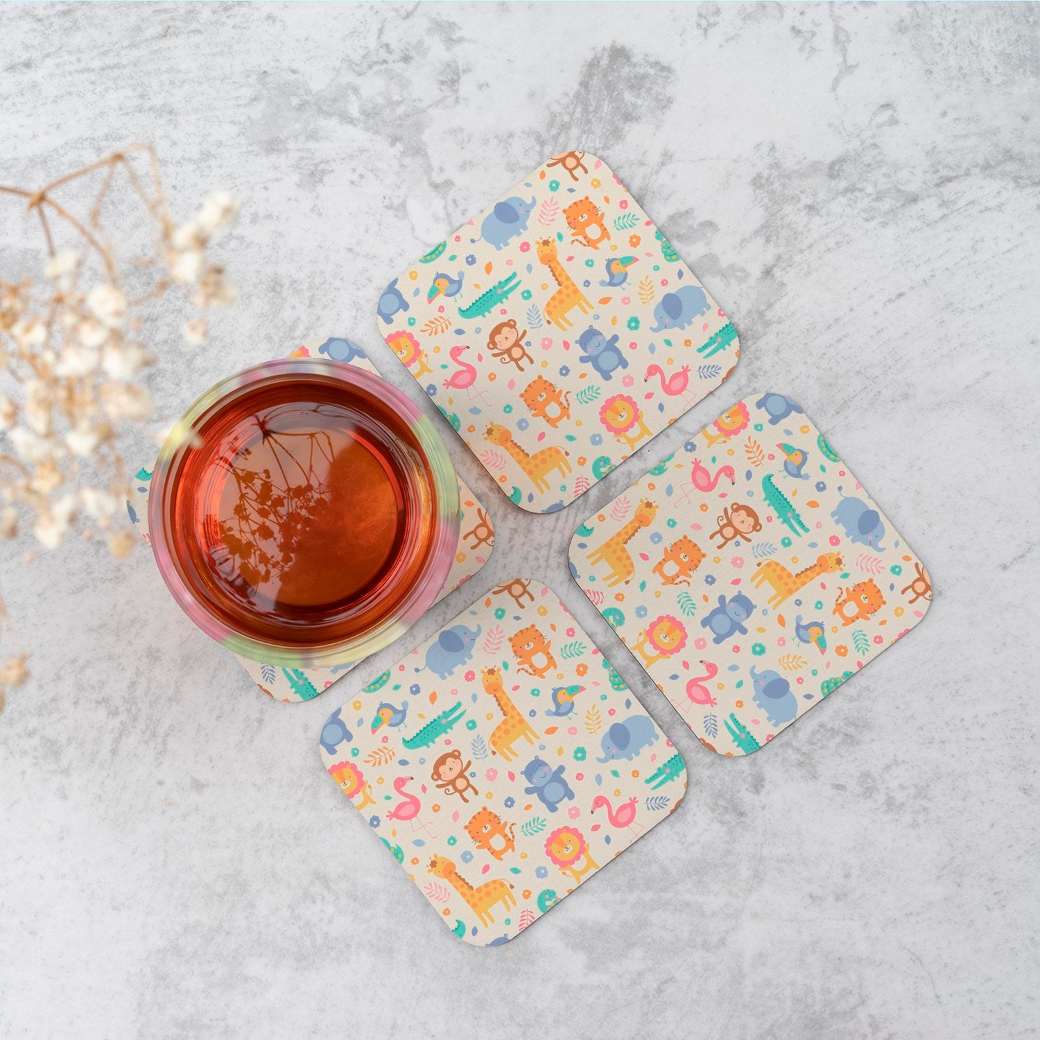 Cute Pastel Jungle Animals Coasters