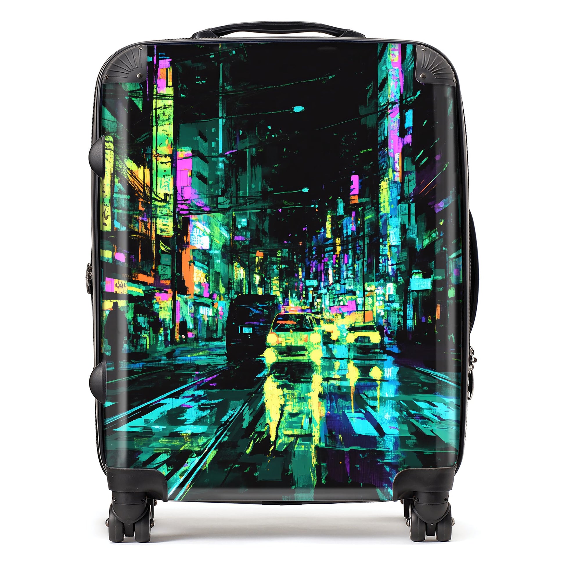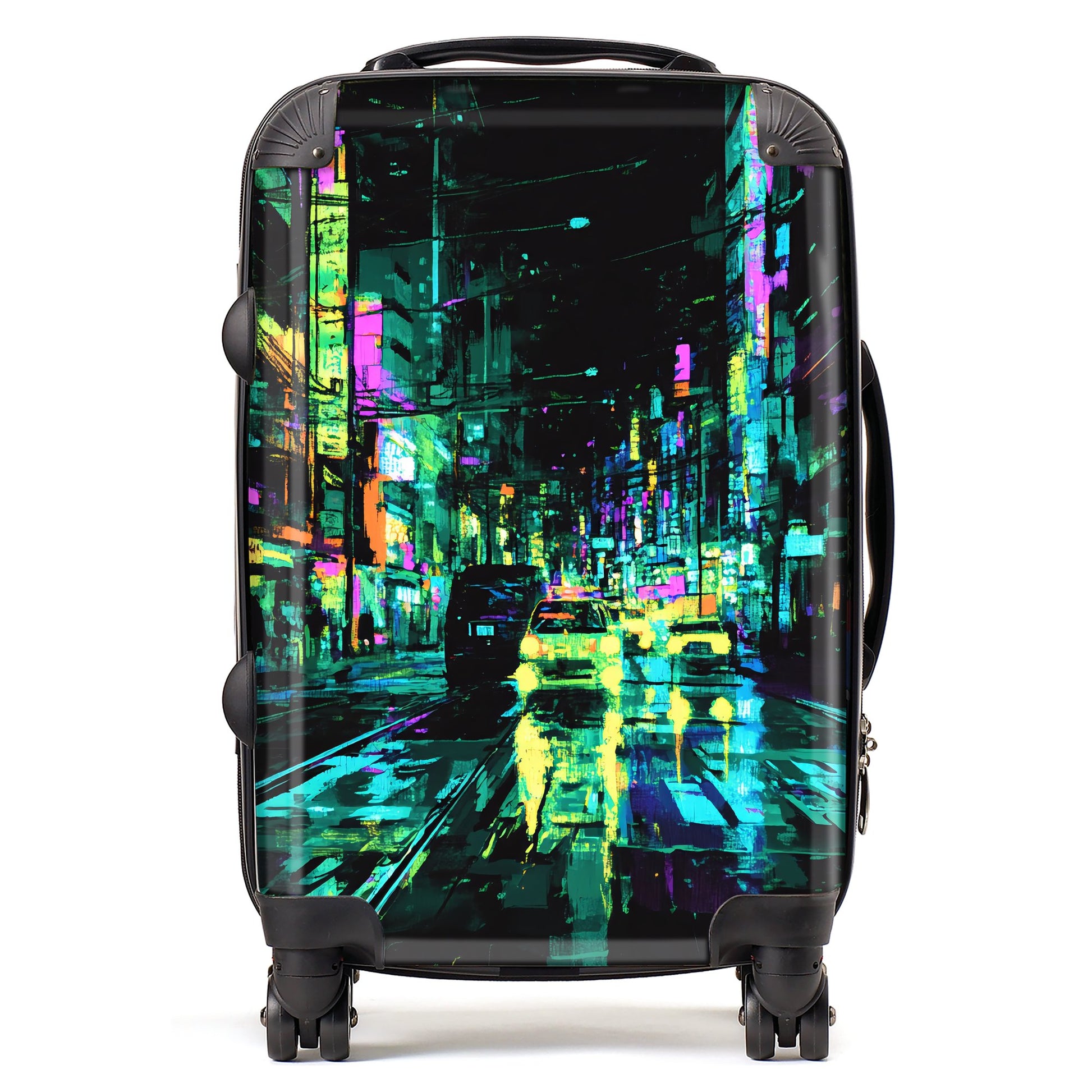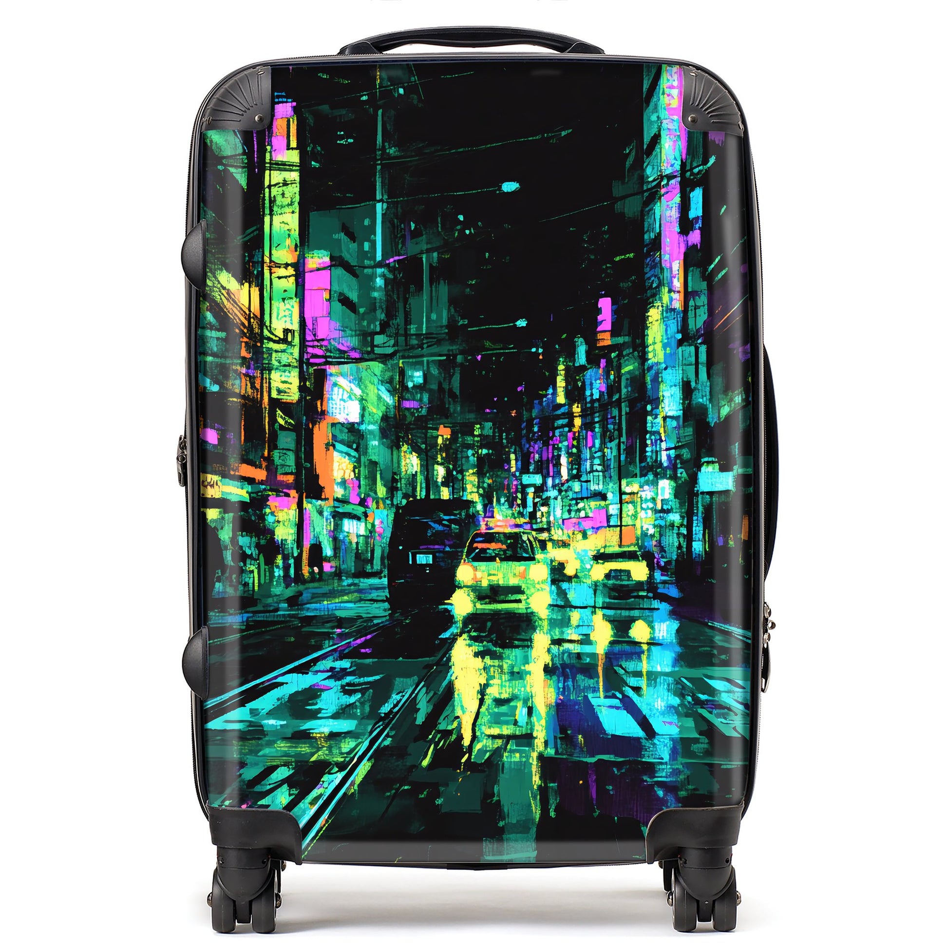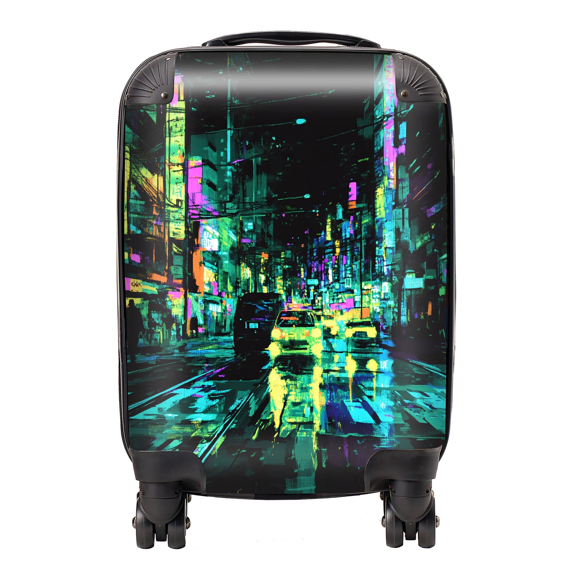 Enhance your travels with the vibrant design of a Dante Mercer suitcase. Each piece features Dante's digital art, capturing the energy of urban nightlife with bold neon colors set against deep blacks. His high-contrast illustrations explore the electric atmosphere and hidden stories of city life. Crafted from durable yet lightweight materials, this suitcase is both eye-catching and built to endure the demands of travel while being easy to carry. Whether you're planning a quick getaway or an extended trip, the Dante Mercer Suitcase blends artistic flair with practicality, adding a dynamic, modern touch to your travel experience. Stand out with this unique, urban-inspired piece.