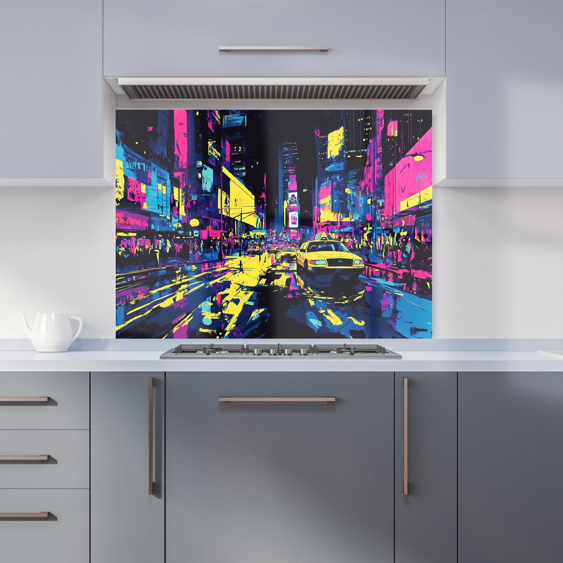 Enhance your kitchen with the vibrant design of a Dante Mercer glass splashback. Each piece features Dante's digital art, capturing the energy of urban nightlife with bold neon colors against deep blacks. His high-contrast illustrations explore the electric atmosphere and hidden stories of city life.