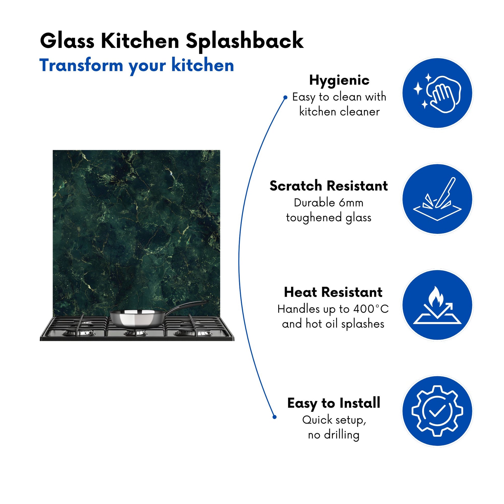 Enhance your kitchen with our stunning glass splashback. This high-quality addition boosts both functionality and style. The high-resolution print on toughened glass creates a striking focal point.