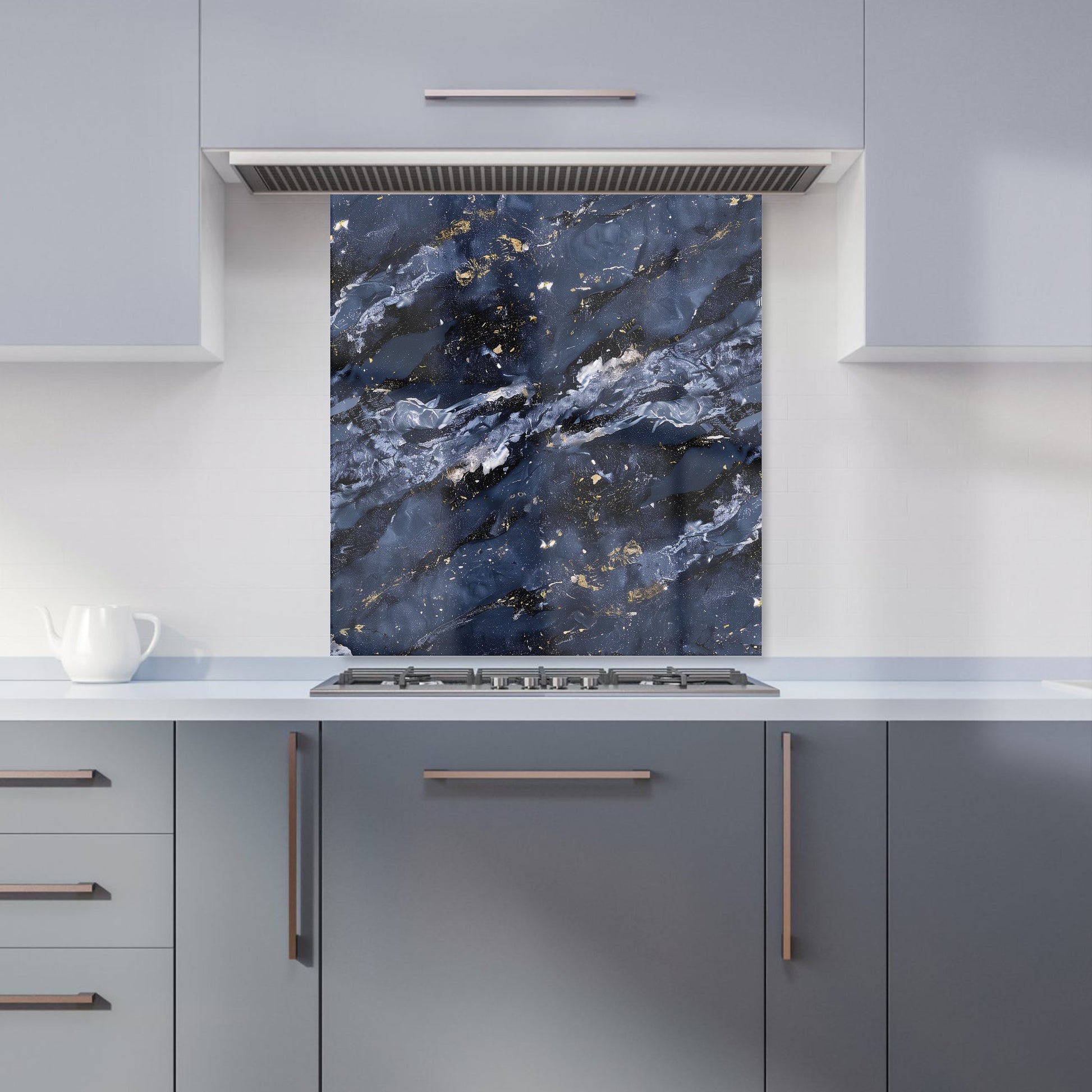 Deep Ocean Blue Quartz Effect Kitchen Splashback