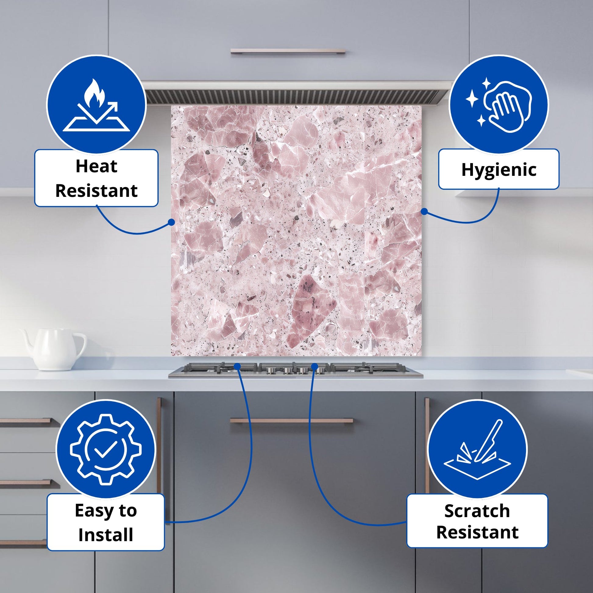 Dusty Pink Quartz Effect Kitchen Splashback