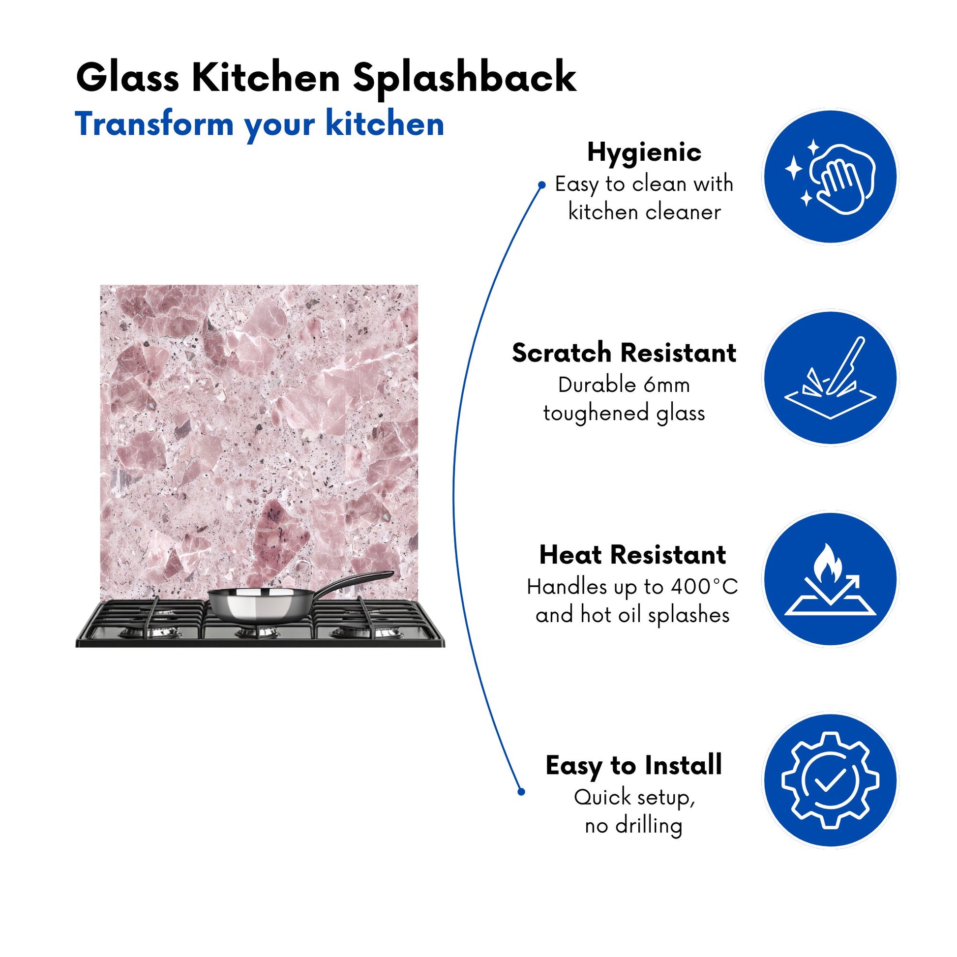 Durable and easy to clean, it's perfect for the kitchen. Whether renovating or updating your home’s look, our Premium 6mm Glass Kitchen Splashback is a stylish choice that makes a lasting impression. Upgrade your kitchen décor today for the perfect mix of beauty and practicality.