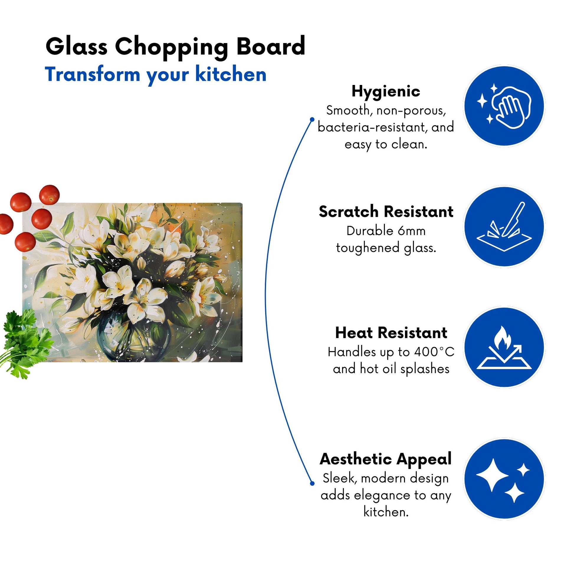 Add a touch of elegance and practicality to your kitchen with this premium glass chopping board from Warren Reed. Made from toughened glass, it’s designed to handle daily use while showcasing stunning artistic designs. Whether you use it as a cutting board, serving platter, or decorative piece, it’s the perfect blend of style and function.