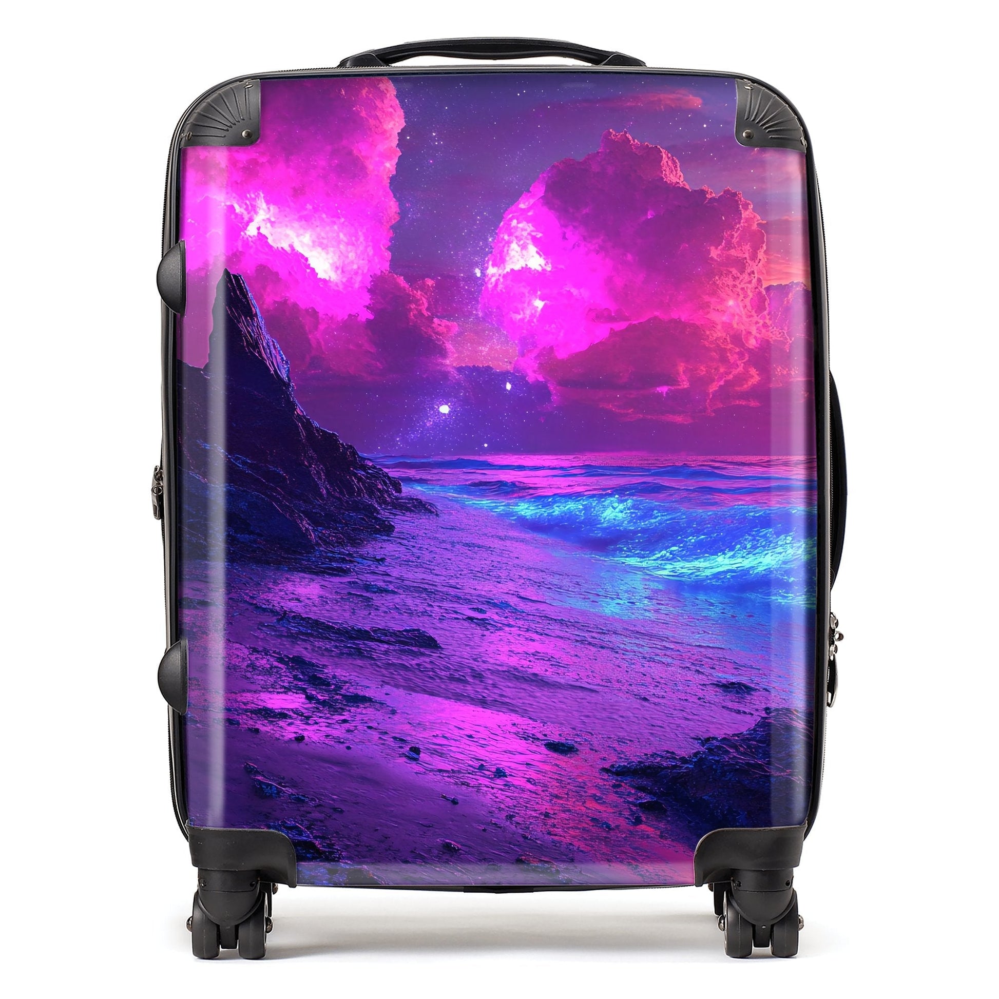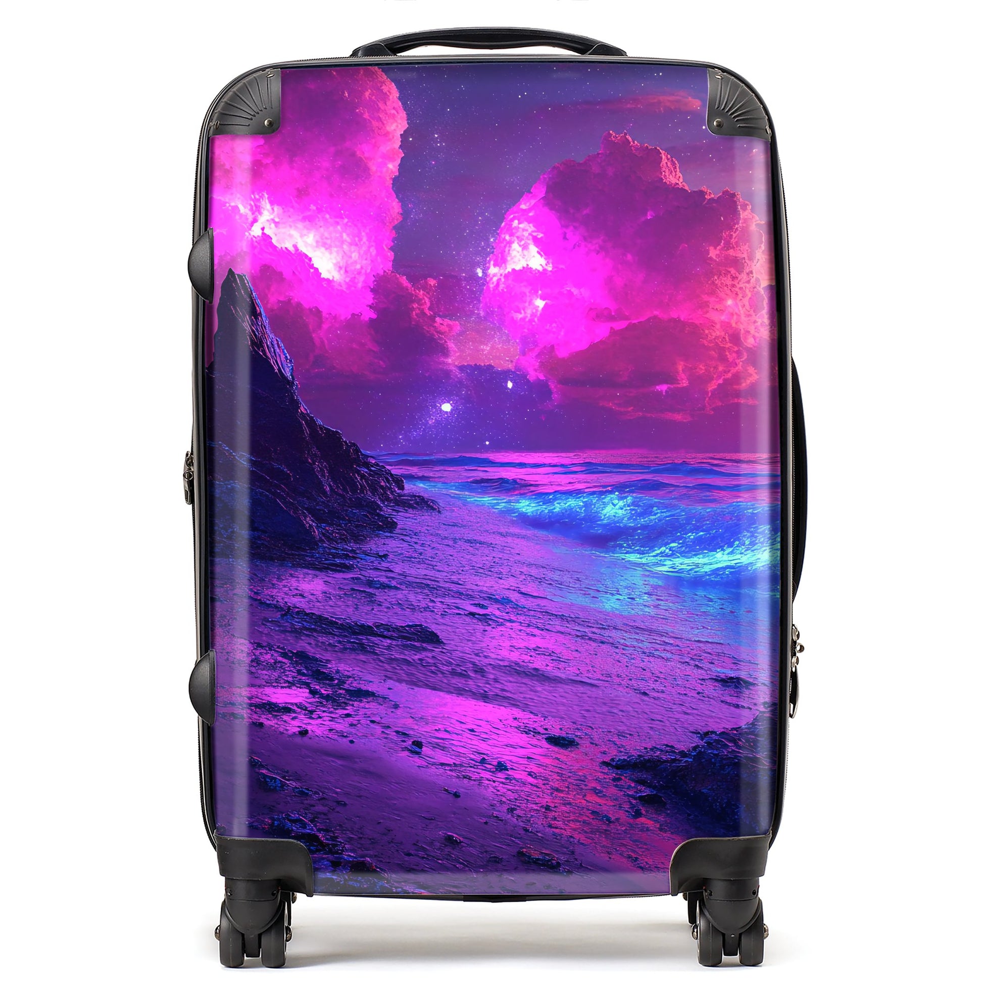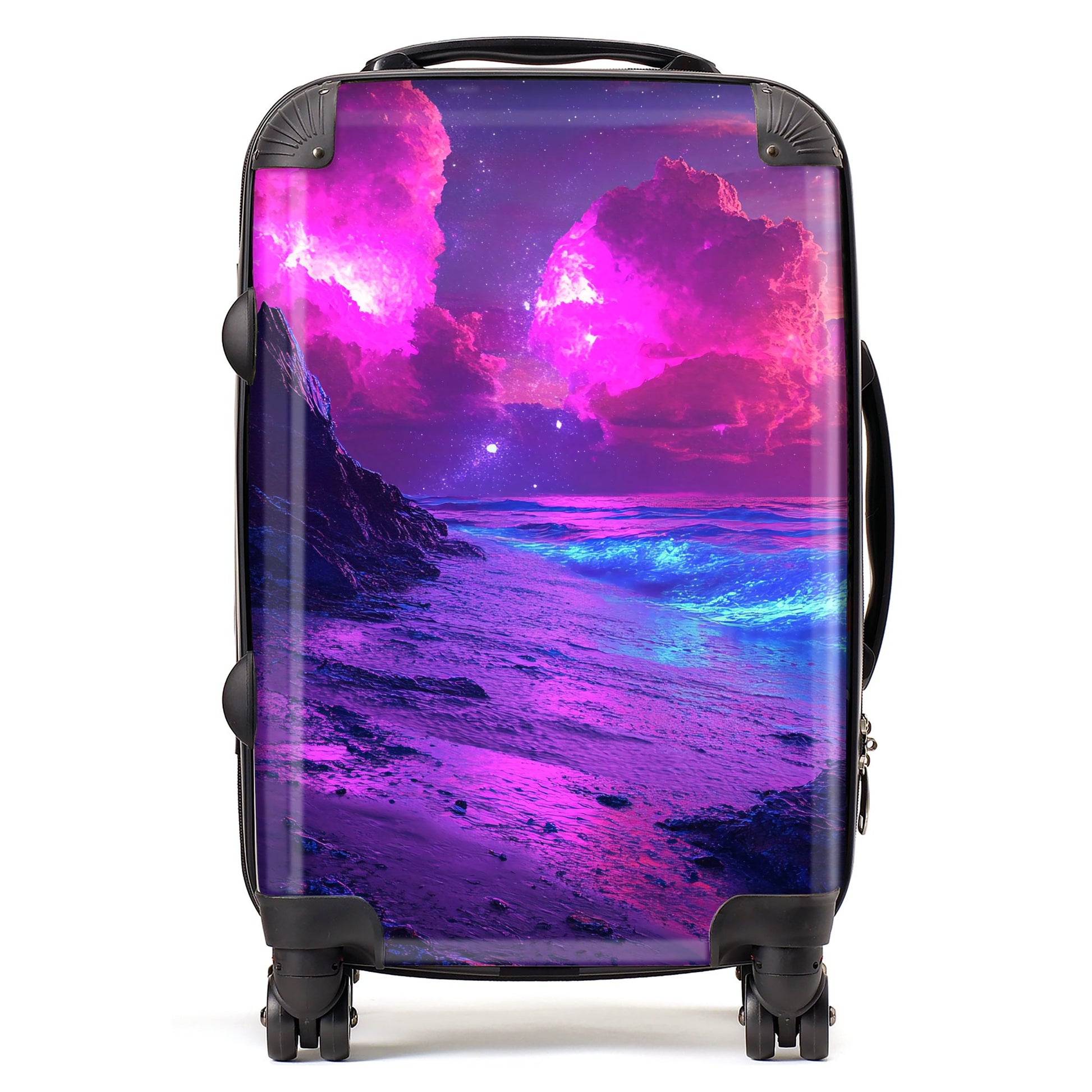 Enhance your travels with the captivating design of an Elena Sable suitcase. Each piece features Elena's digital surrealist art, showcasing vivid, dreamlike imagery and otherworldly scenes that blur the lines between reality and imagination. Her vibrant purples, blues, and neon pinks bring fantastical landscapes to life. Made from premium, lightweight materials, this suitcase is not only a visual marvel but also durable and easy to maneuver. Whether you’re embarking on a quick trip or a longer adventure, the Elena Sable Suitcase combines artistic beauty with practical functionality, adding a touch of surreal elegance to your journey. Transform your travel experience with this dreamlike, bespoke piece.