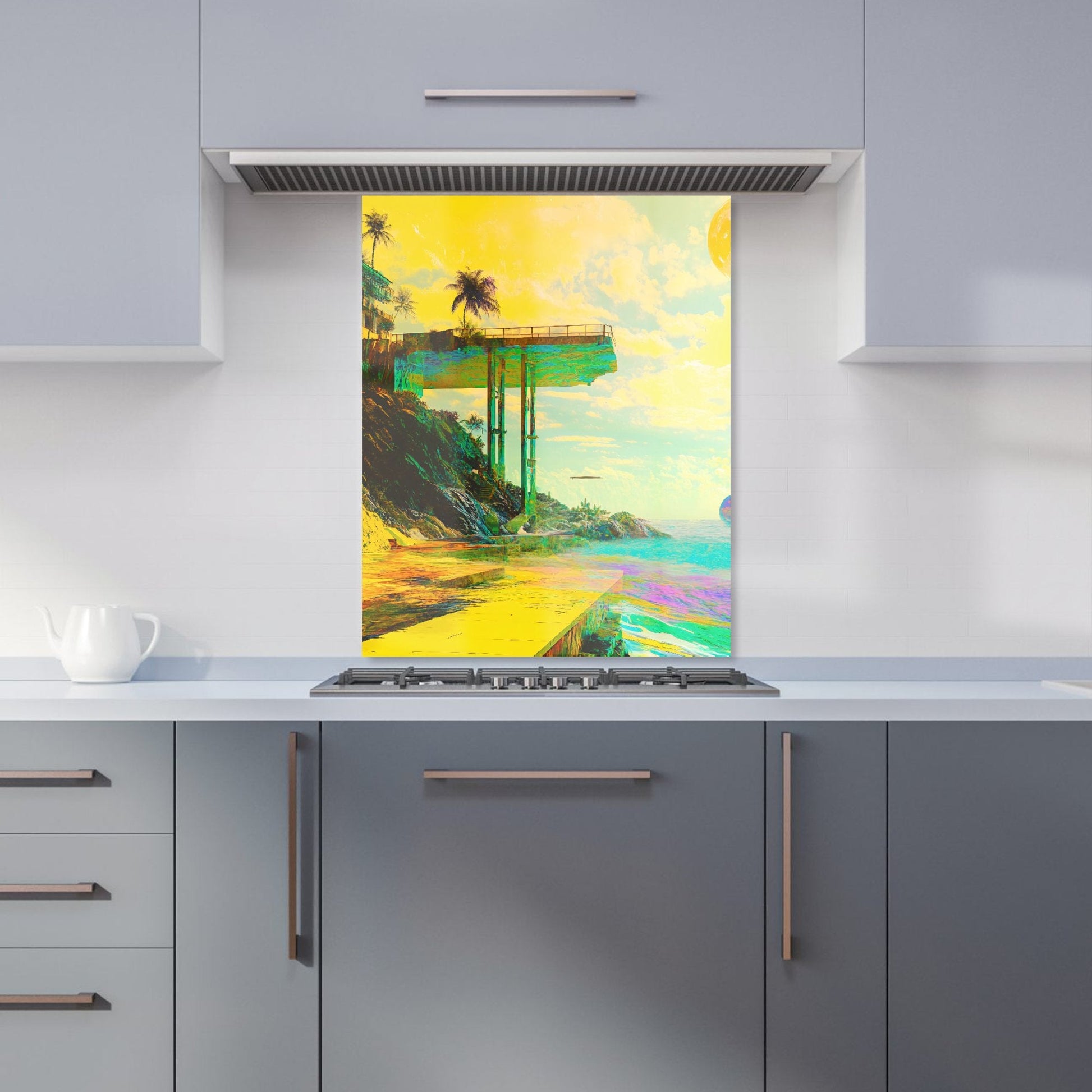 Enhance your kitchen with the captivating design of an Elena Sable glass splashback. Each piece features Elena's digital surrealist art, showcasing vivid, dreamlike imagery and otherworldly scenes that blend reality with the subconscious. Her hyper-realistic yet fantastical landscapes are brought to life in vibrant purples, blues, and neon pinks.