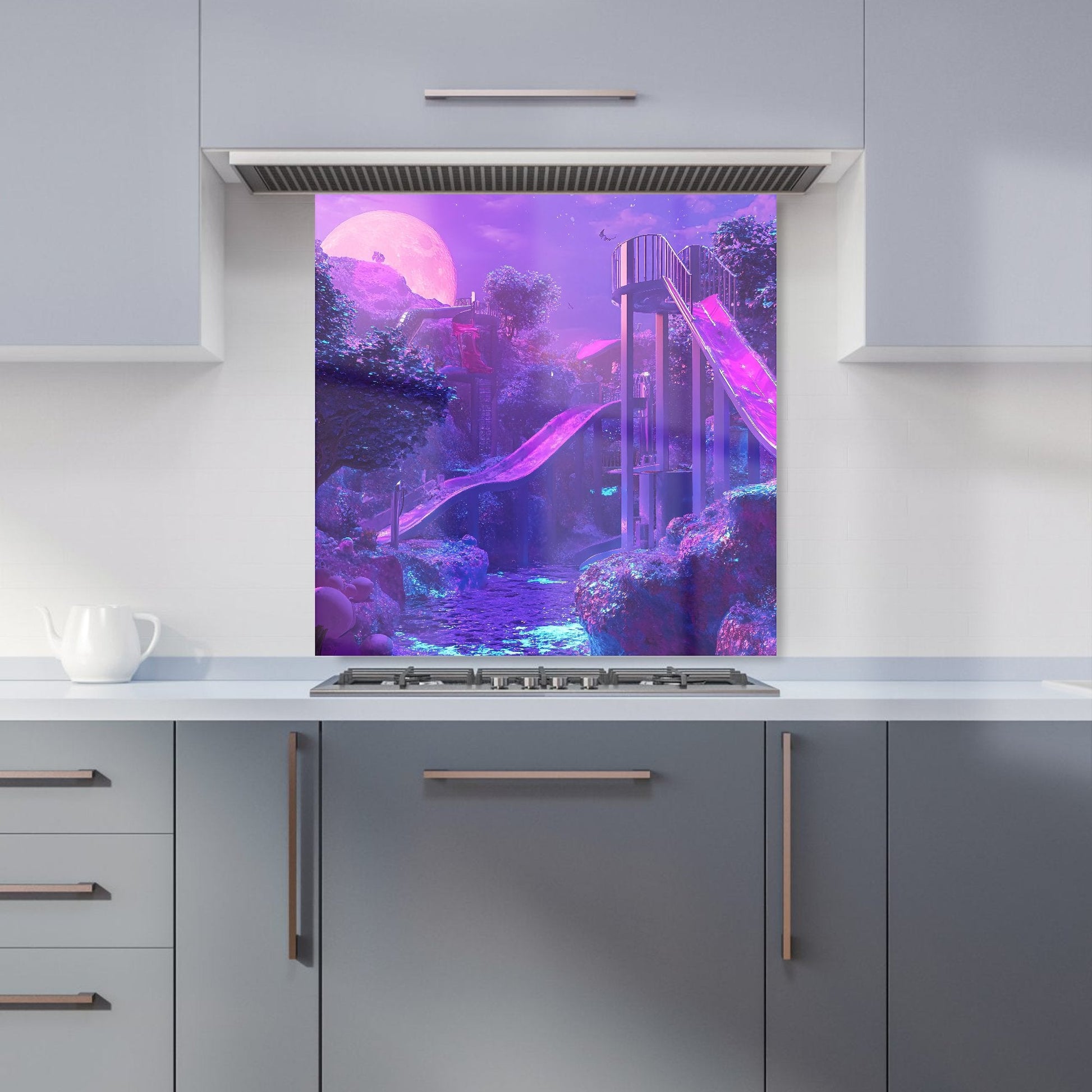 Enhance your kitchen with the captivating design of an Elena Sable glass splashback. Each piece features Elena's digital surrealist art, showcasing vivid, dreamlike imagery and otherworldly scenes that blend reality with the subconscious. Her hyper-realistic yet fantastical landscapes are brought to life in vibrant purples, blues, and neon pinks.