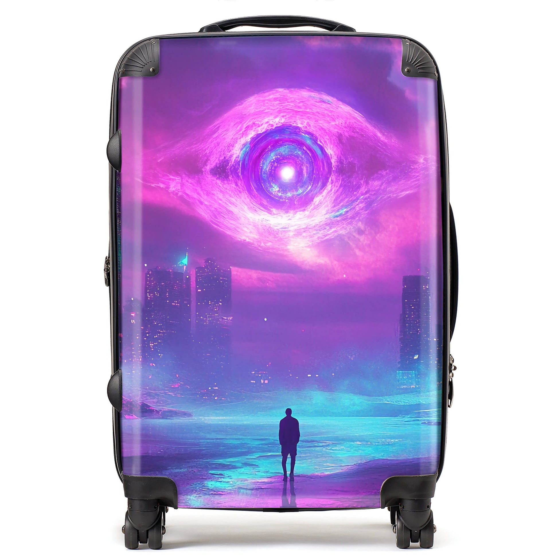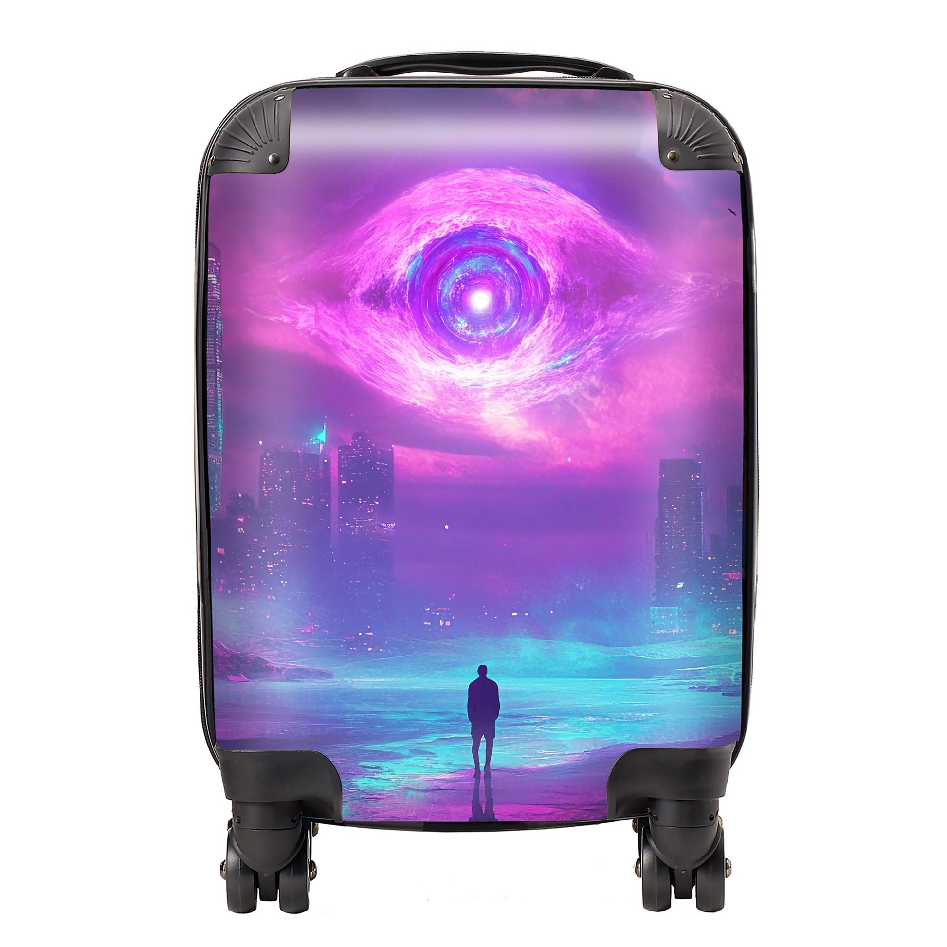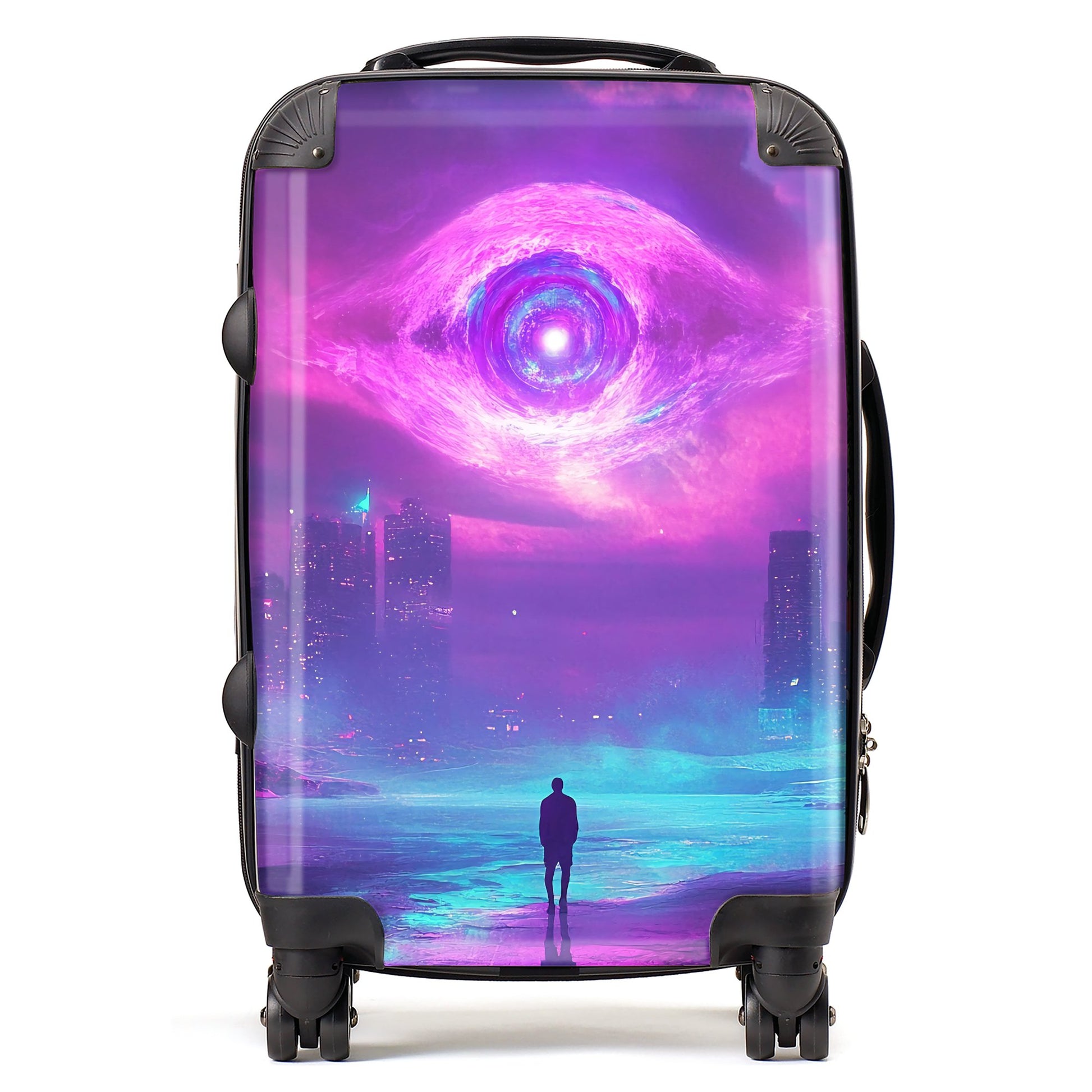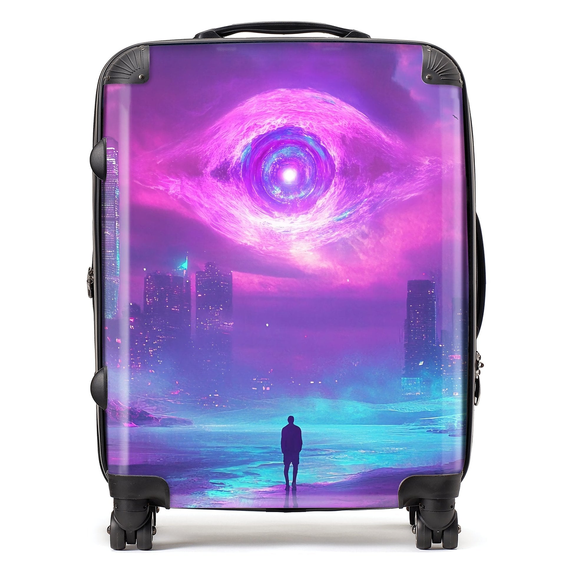Enhance your travels with the captivating design of an Elena Sable suitcase. Each piece features Elena's digital surrealist art, showcasing vivid, dreamlike imagery and otherworldly scenes that blur the lines between reality and imagination. Her vibrant purples, blues, and neon pinks bring fantastical landscapes to life. Made from premium, lightweight materials, this suitcase is not only a visual marvel but also durable and easy to maneuver. Whether you’re embarking on a quick trip or a longer adventure, the Elena Sable Suitcase combines artistic beauty with practical functionality, adding a touch of surreal elegance to your journey. Transform your travel experience with this dreamlike, bespoke piece.