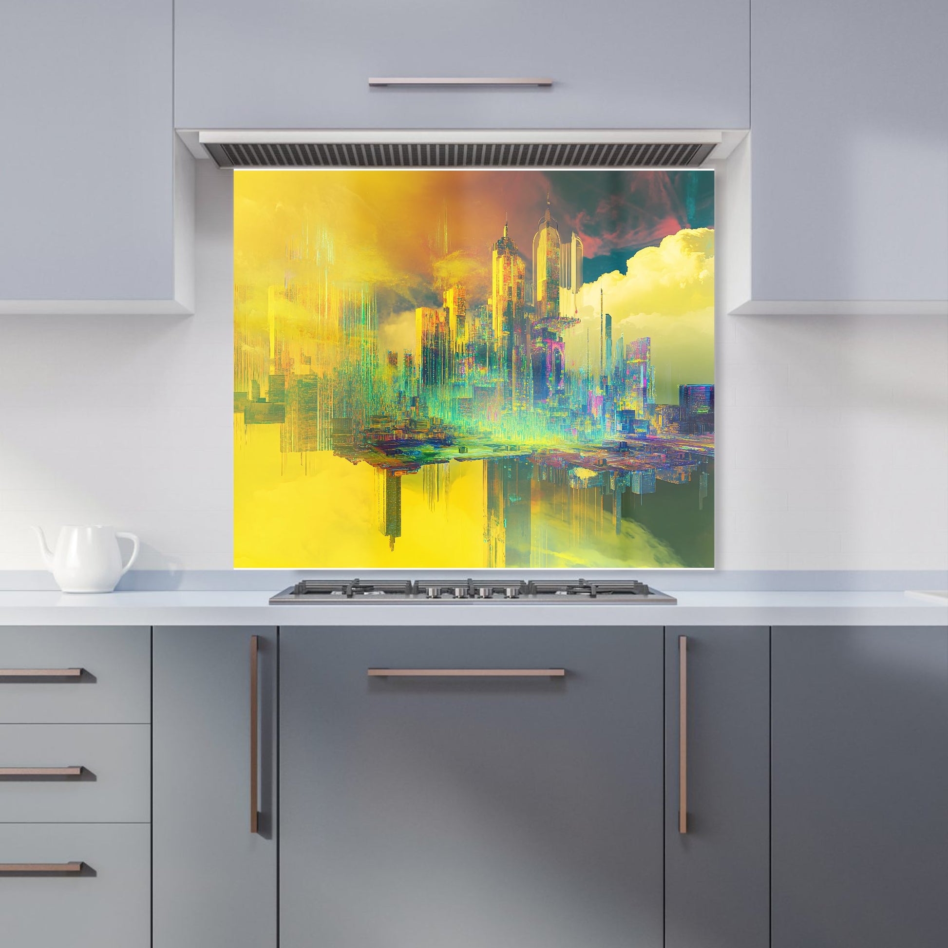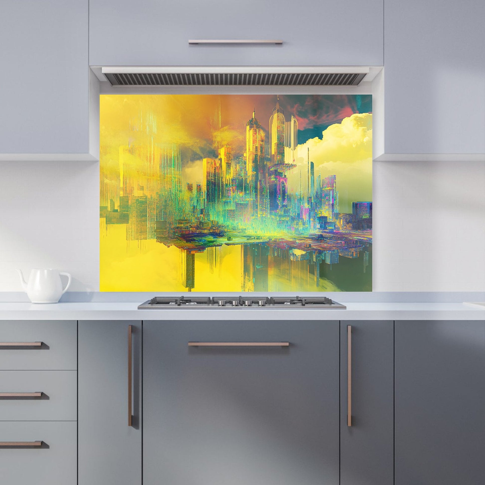 Enhance your kitchen with the captivating design of an Elena Sable glass splashback. Each piece features Elena's digital surrealist art, showcasing vivid, dreamlike imagery and otherworldly scenes that blend reality with the subconscious. Her hyper-realistic yet fantastical landscapes are brought to life in vibrant purples, blues, and neon pinks.