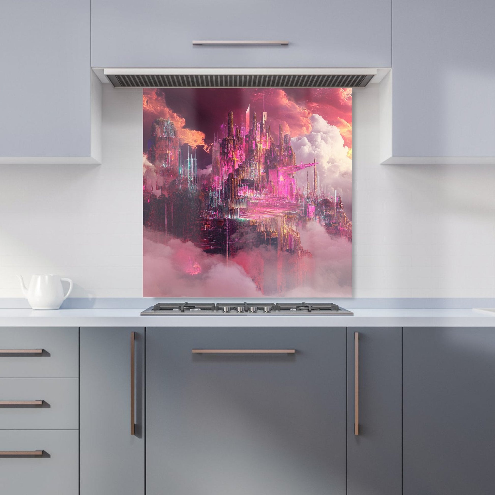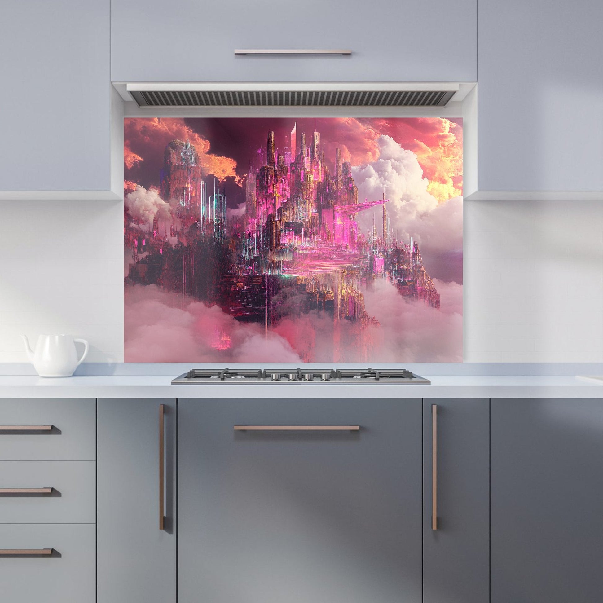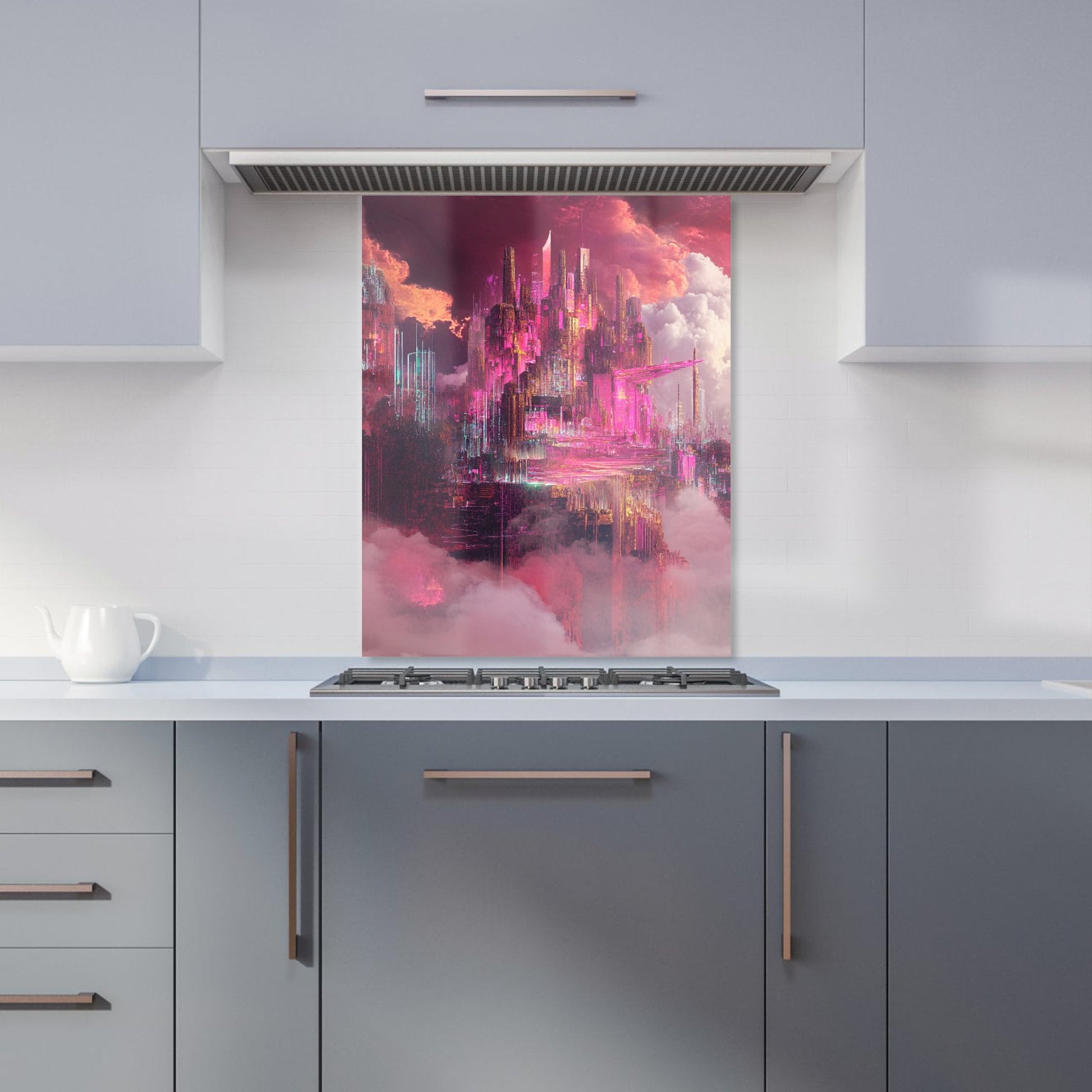 Enhance your kitchen with the captivating design of an Elena Sable glass splashback. Each piece features Elena's digital surrealist art, showcasing vivid, dreamlike imagery and otherworldly scenes that blend reality with the subconscious. Her hyper-realistic yet fantastical landscapes are brought to life in vibrant purples, blues, and neon pinks.