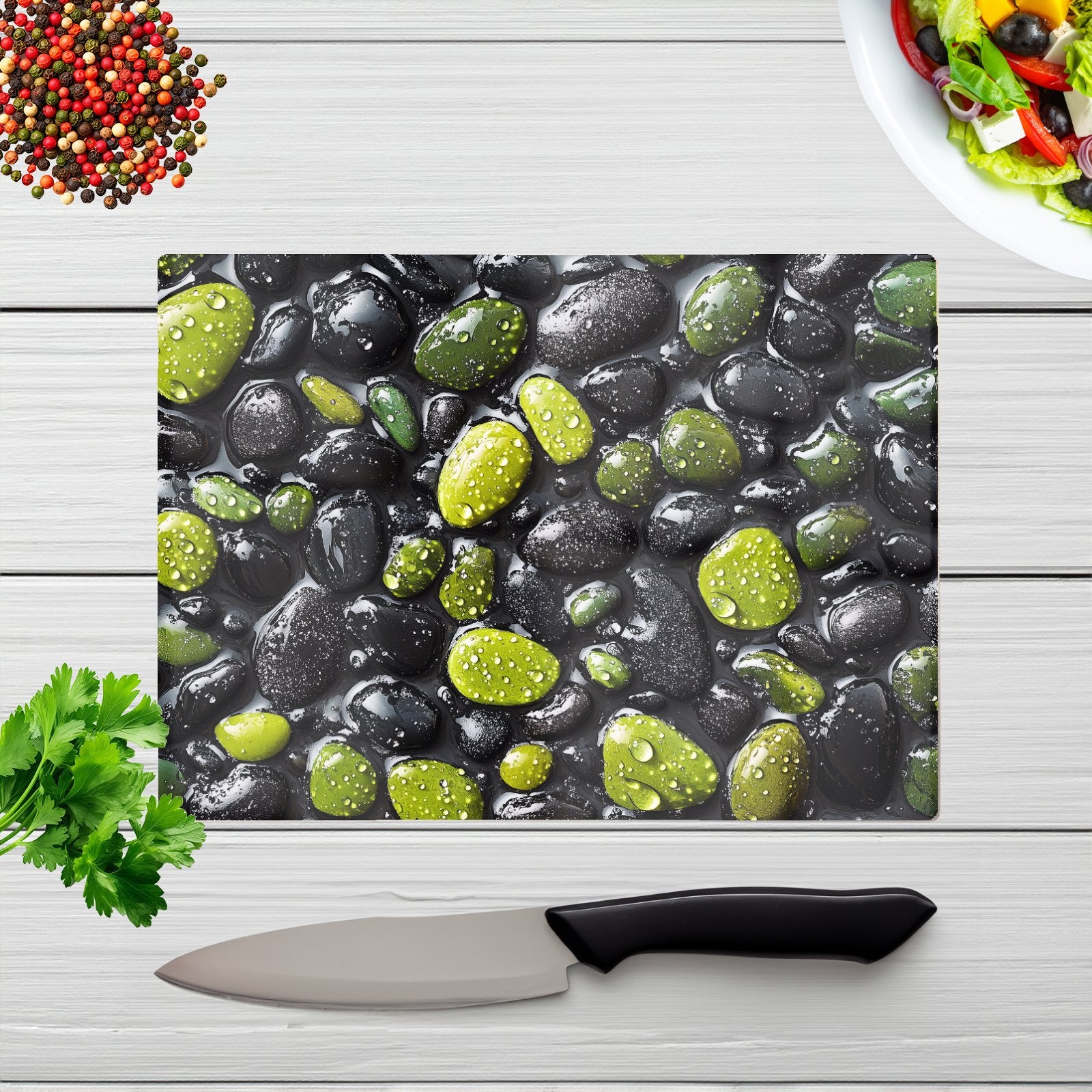 Emerald And Onyx Pebble Design Chopping Board