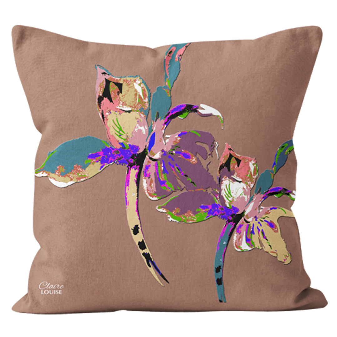 Flora Pop Mocha Mousse Iris 45cm x 45cm Double Sided Cushion