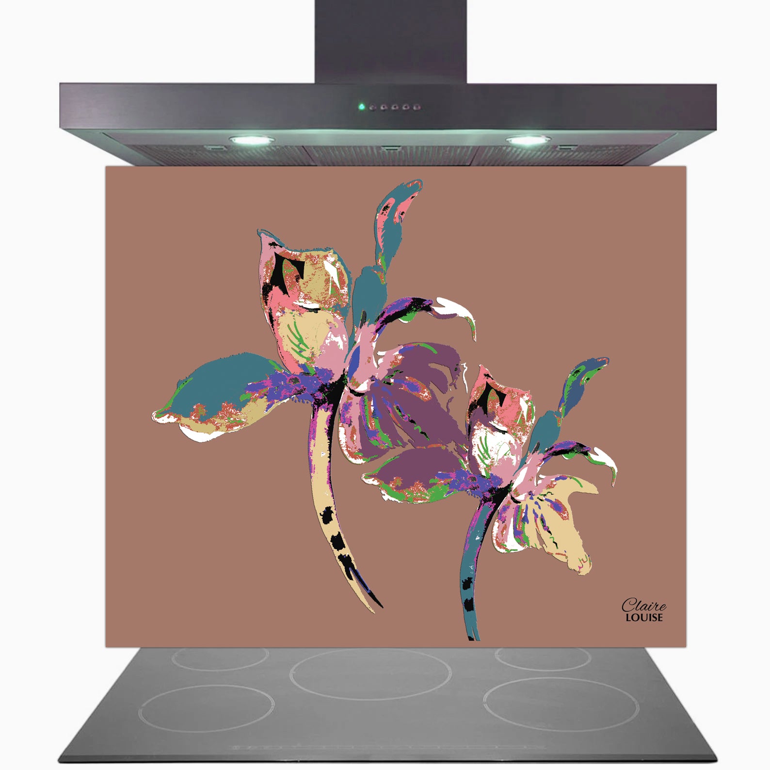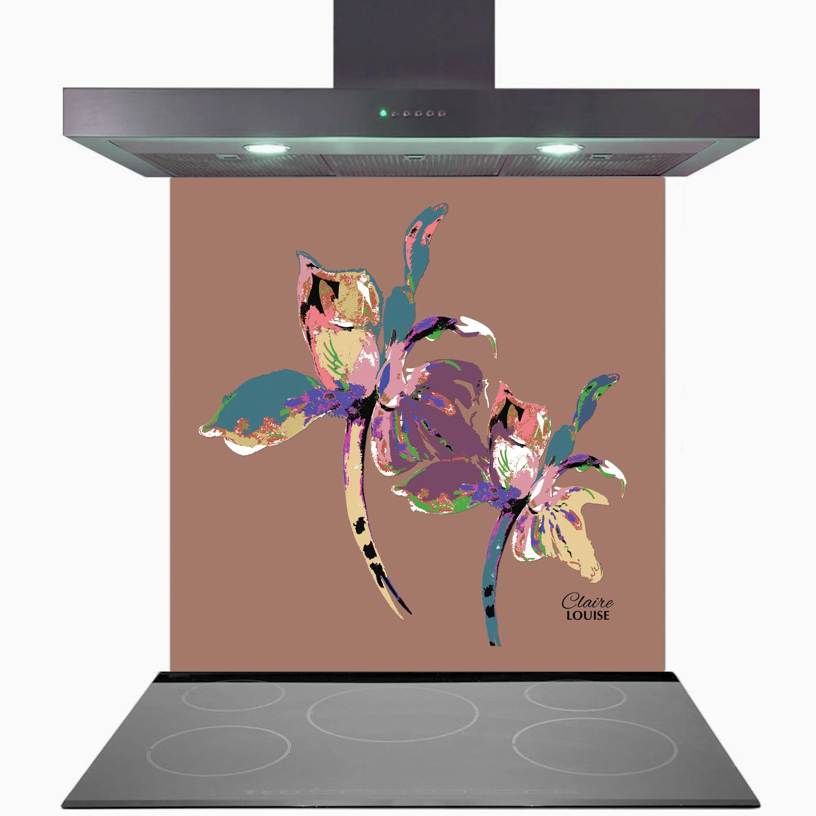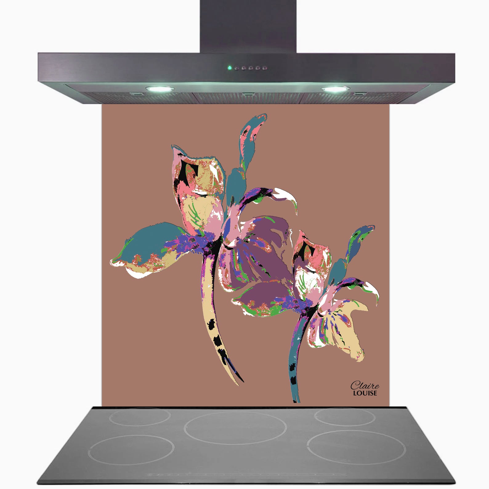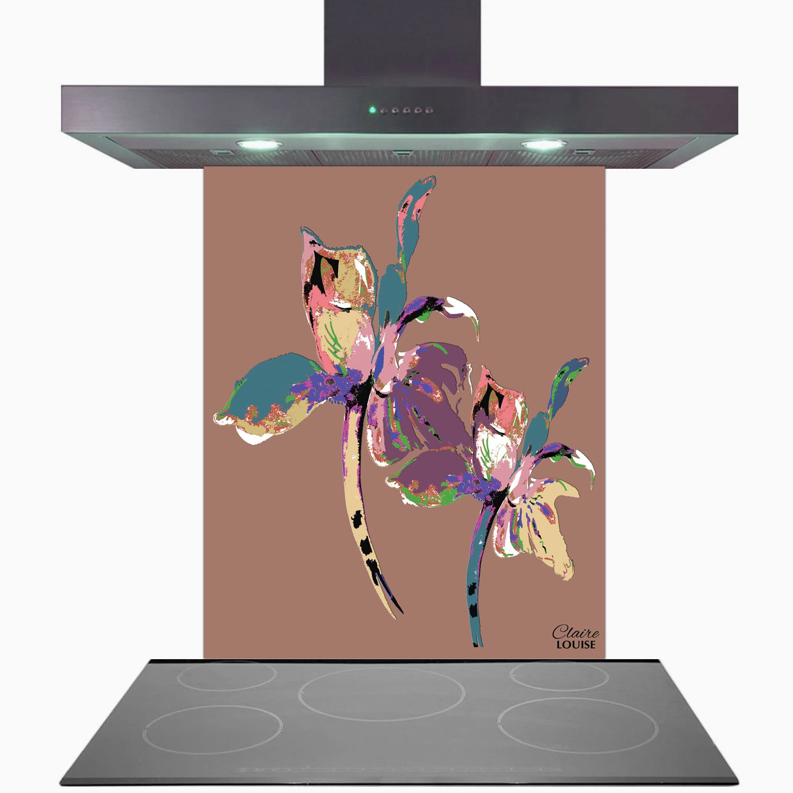 Flora Pop Mocha Mousse Iris Glass Kitchen Splashback