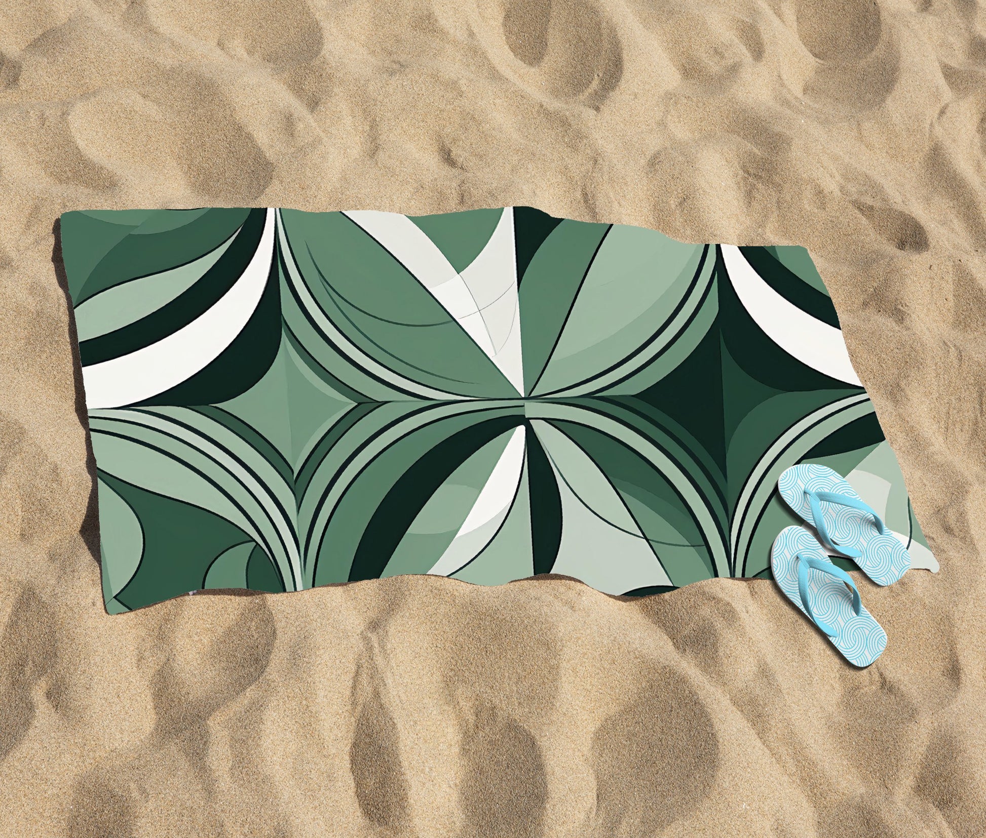 Geometric Green Black Beach Towel