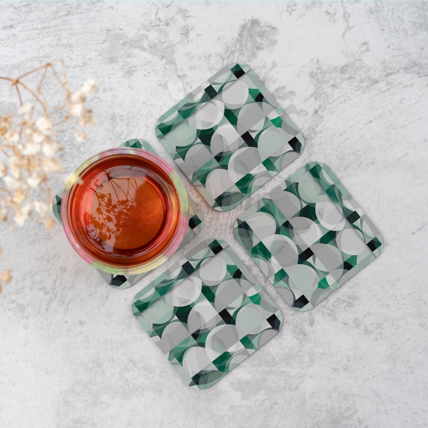 Geometric Grey Green Coasters