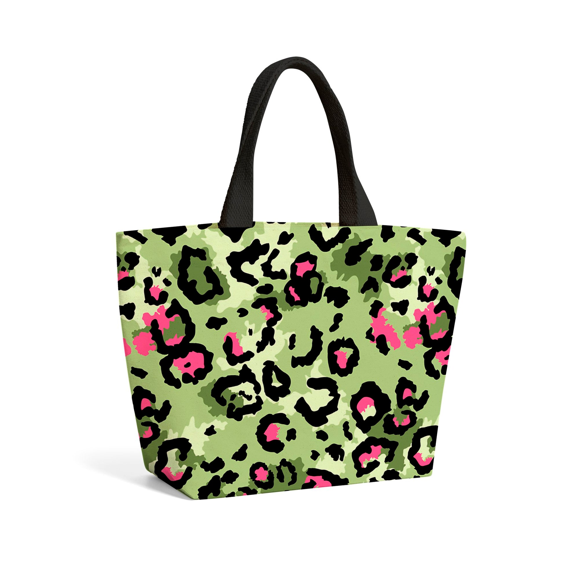 Green And Pink Leopard Print Beach Shopper Tote Bag