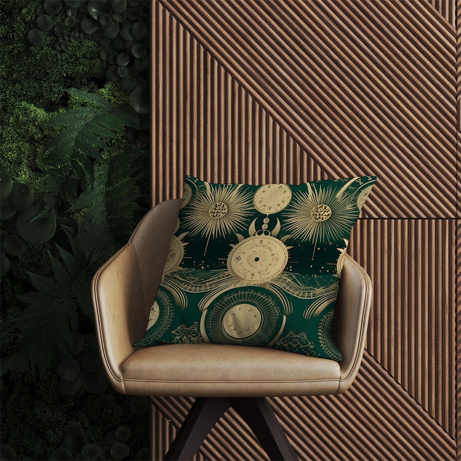 Green Moon and Sun Abstract Pattern Outdoor Cushion