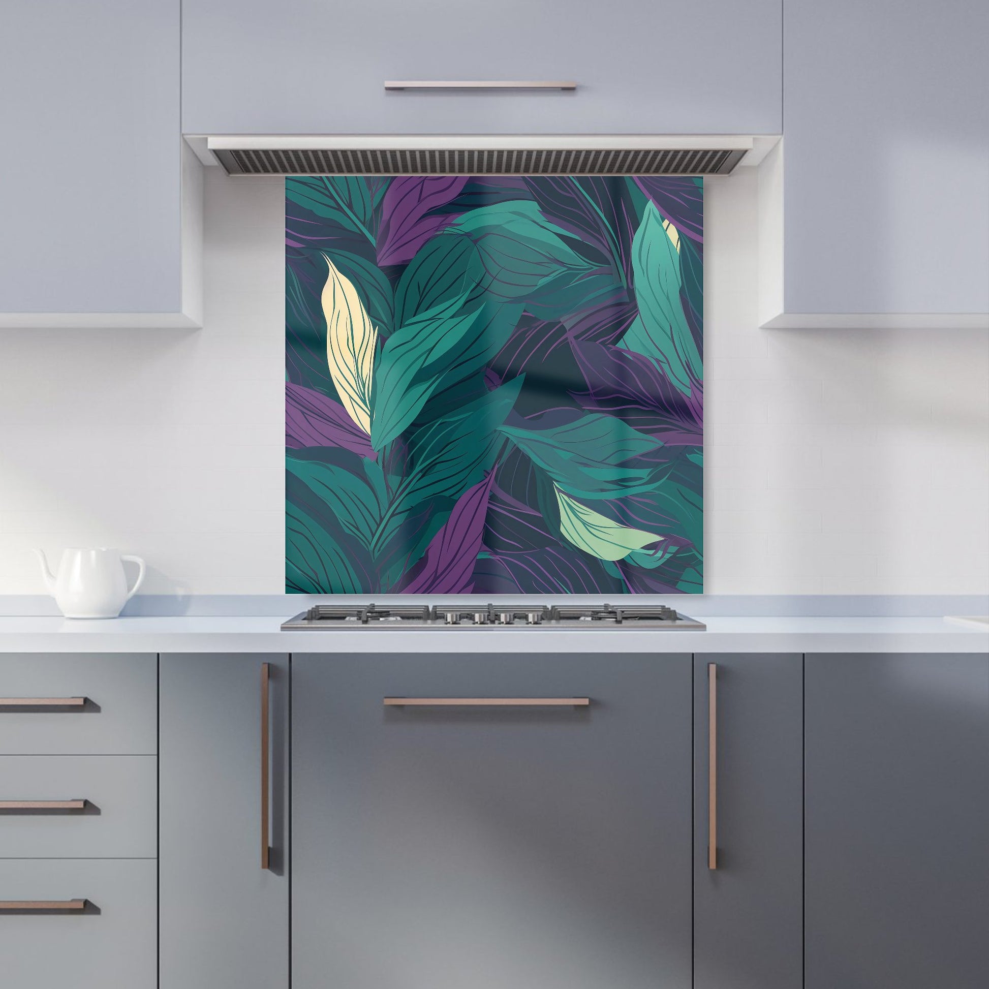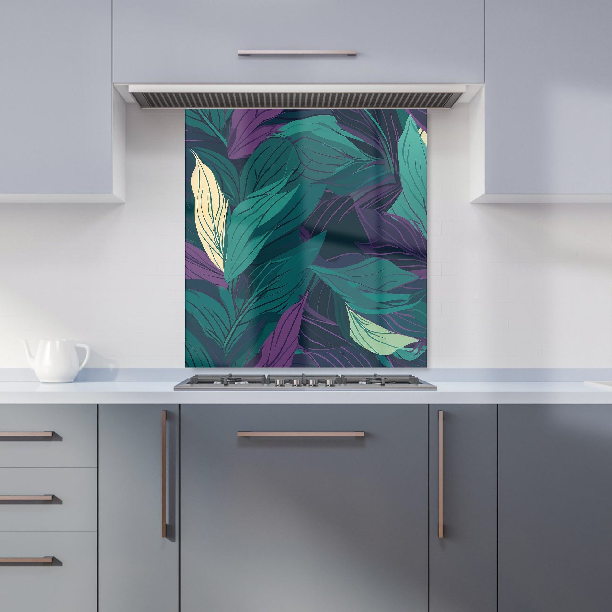 Green Purple Tropical Leaves Kitchen Splashback