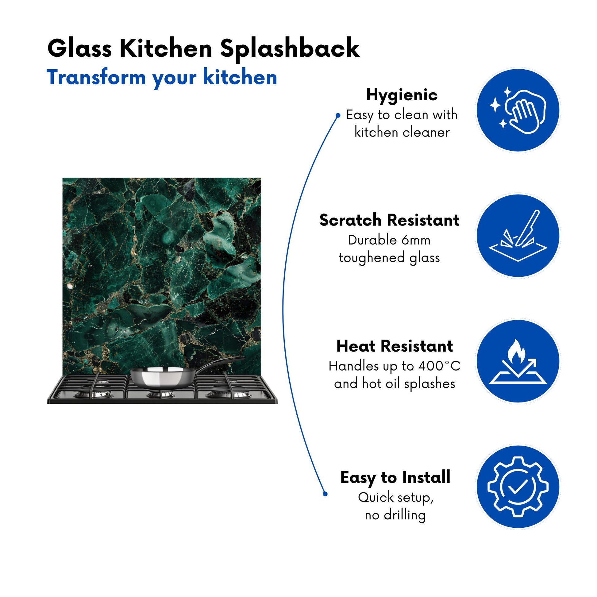 Enhance your kitchen with our stunning glass splashback. This high-quality addition boosts both functionality and style. The high-resolution print on toughened glass creates a striking focal point.