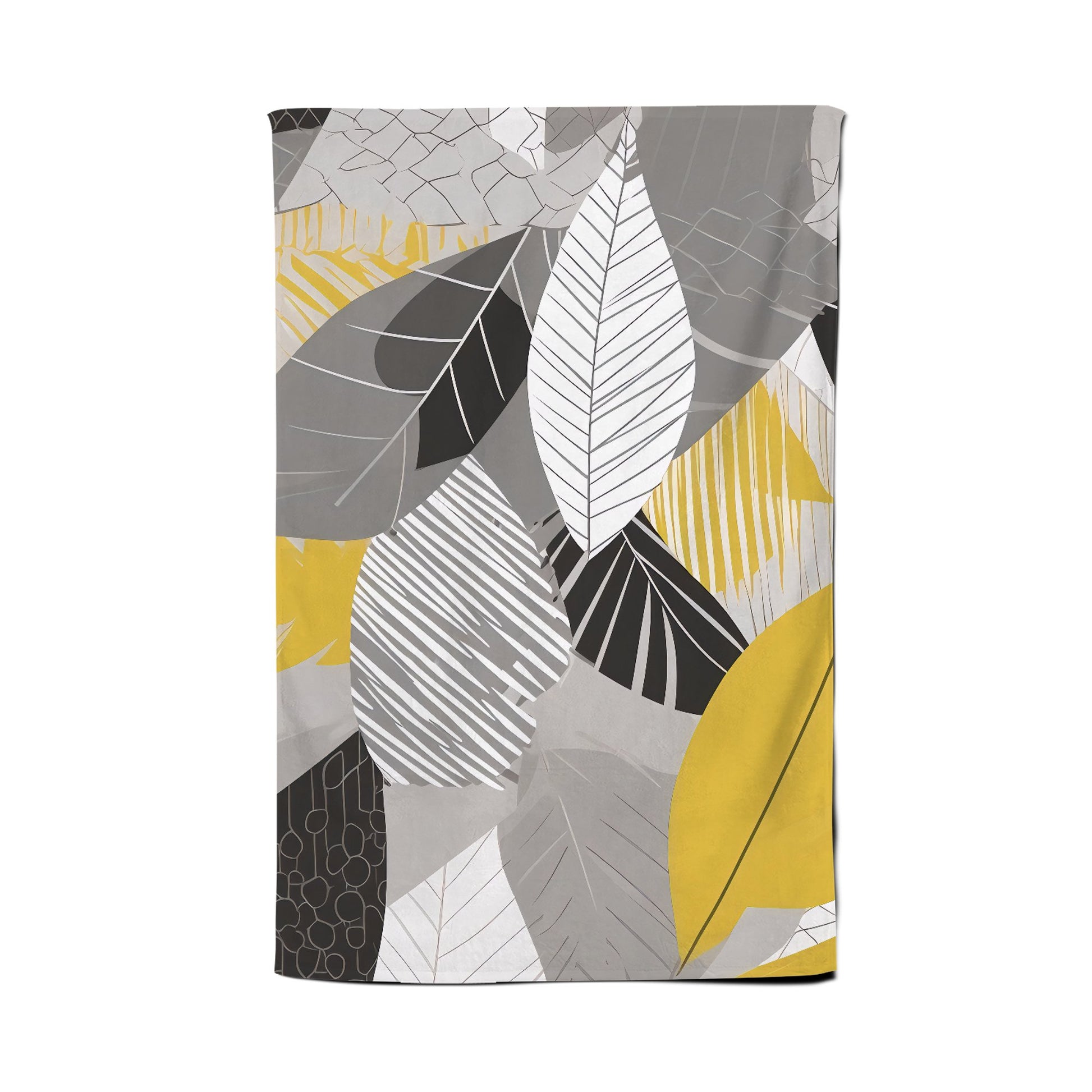 Grey Yellow Autumn Leaves Tea Towel