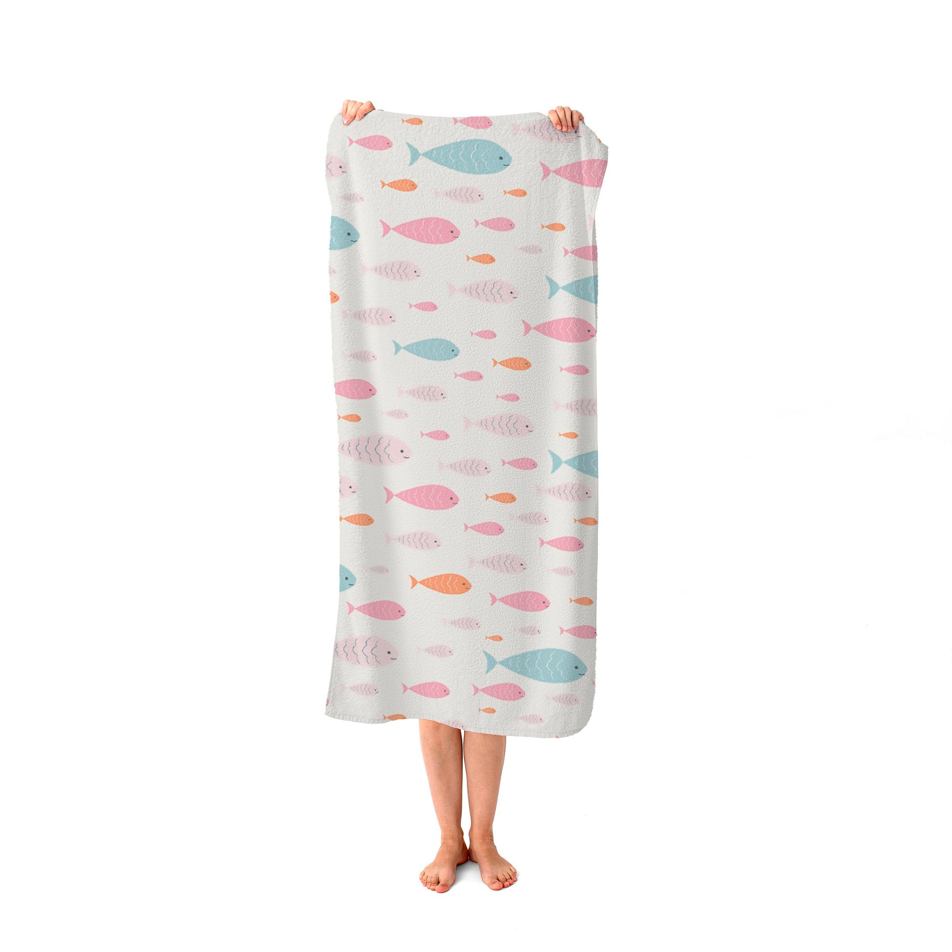 Hand Drawn Swimming Fish Beach Towel