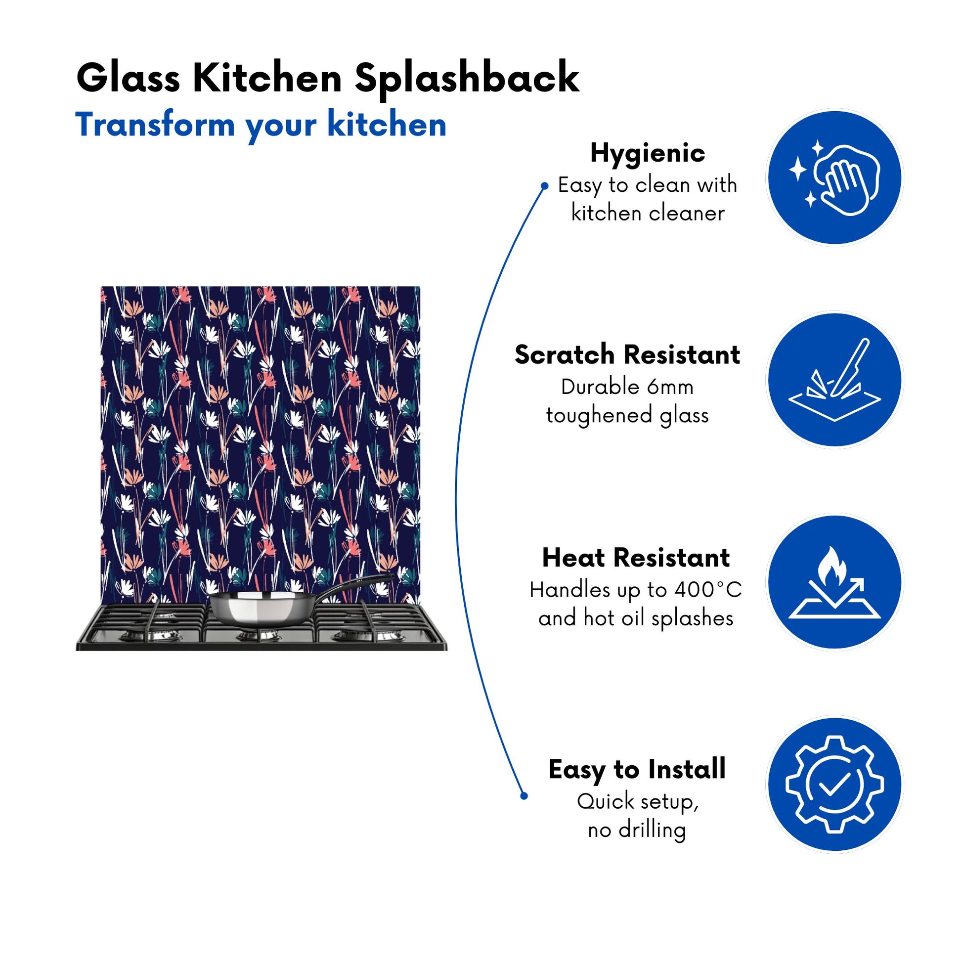 Durable and easy to clean, it's perfect for the kitchen. Whether renovating or updating your home’s look, our Premium 6mm Glass Kitchen Splashback is a stylish choice that makes a lasting impression. Upgrade your kitchen décor today for the perfect mix of beauty and practicality.