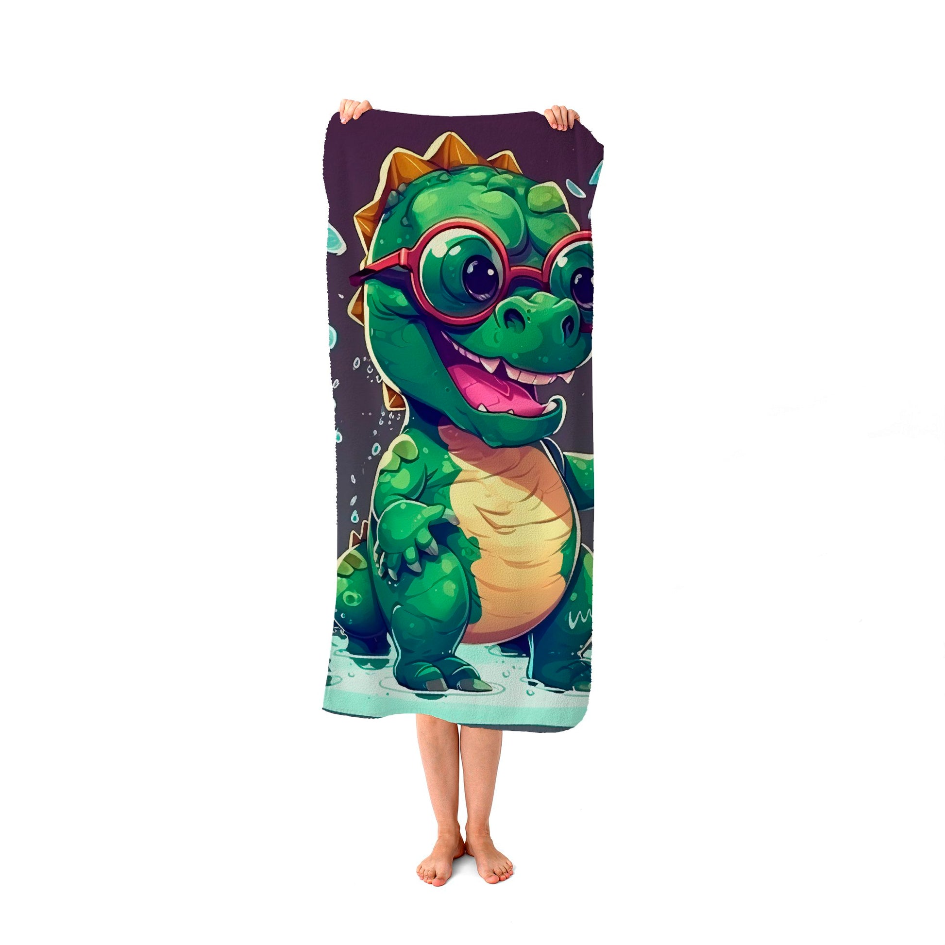 Happy Dino In A Puddle Beach Towel